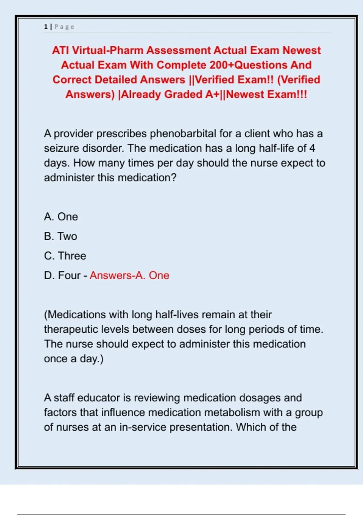 ATI Virtual-Pharm Assessment Actual Exam Newest