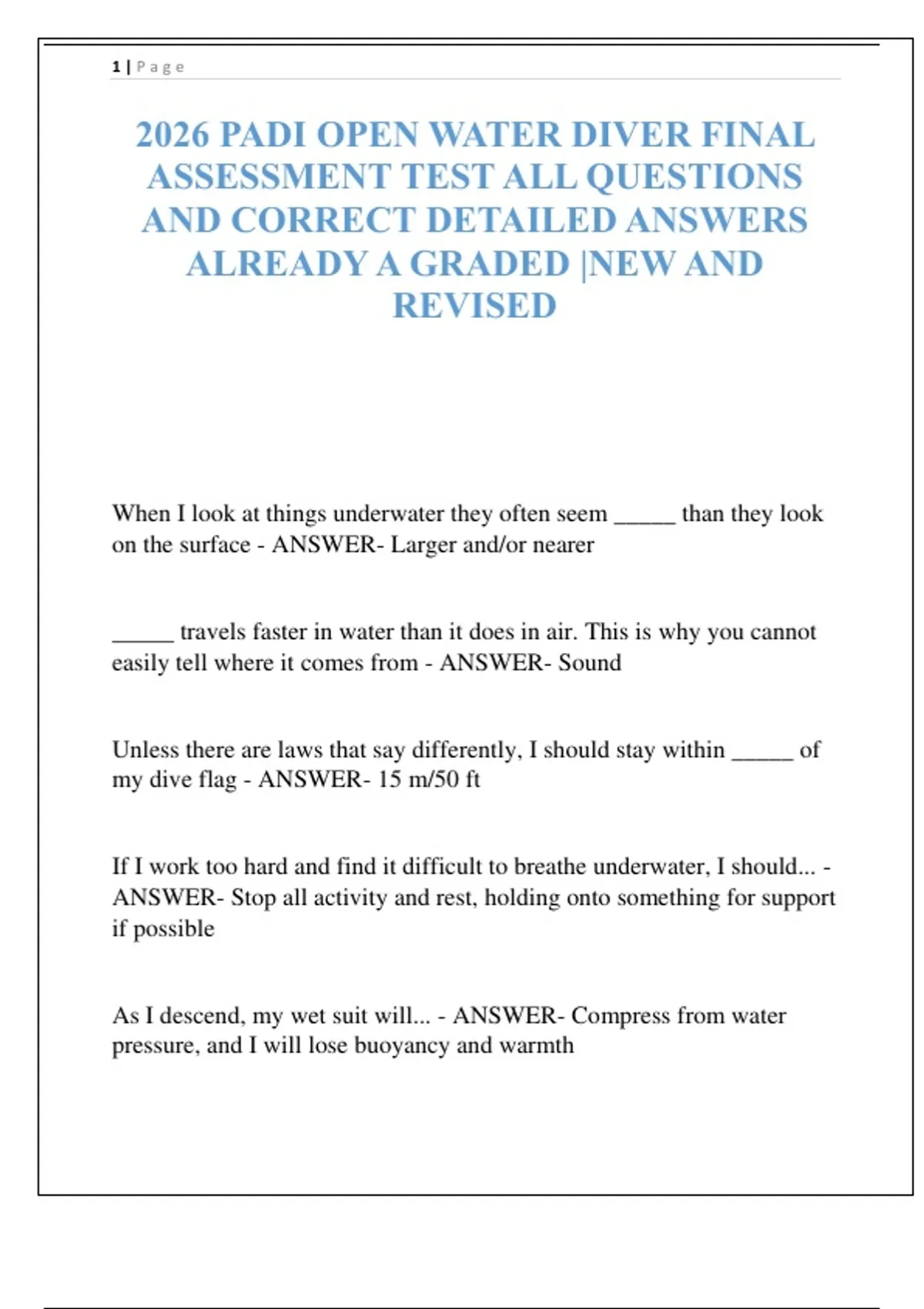 As I descend, my wet suit will... - ANSWER- Compress from water