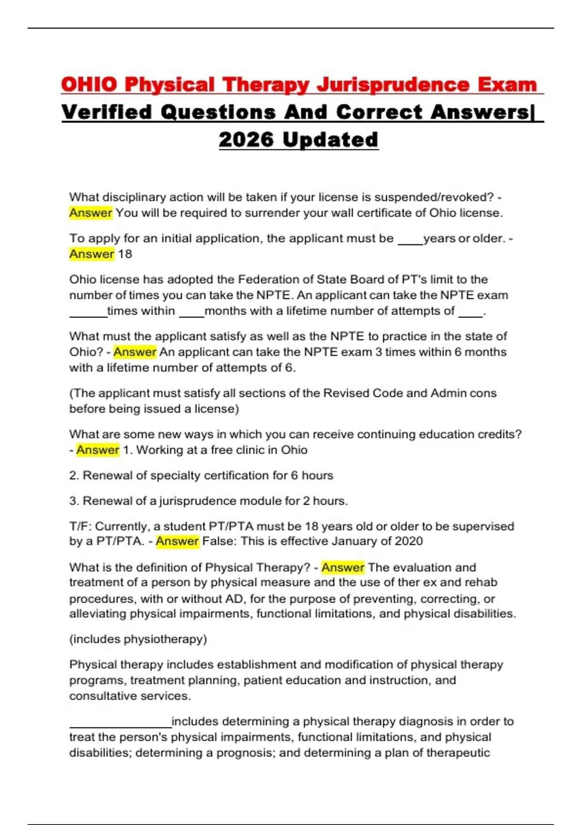 Ohio license has adopted the Federation of State Board of PT's limit to the