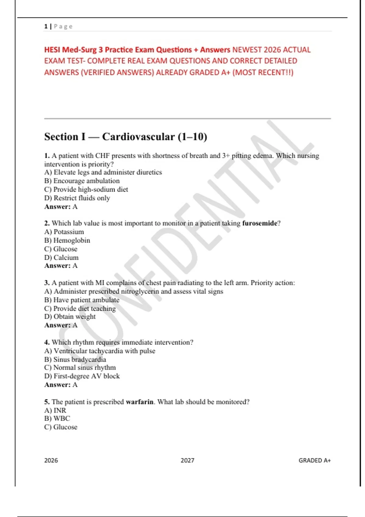 HESI Med-Surg 3 Practice Exam Questions + Answers NEWEST 2026 ACTUAL