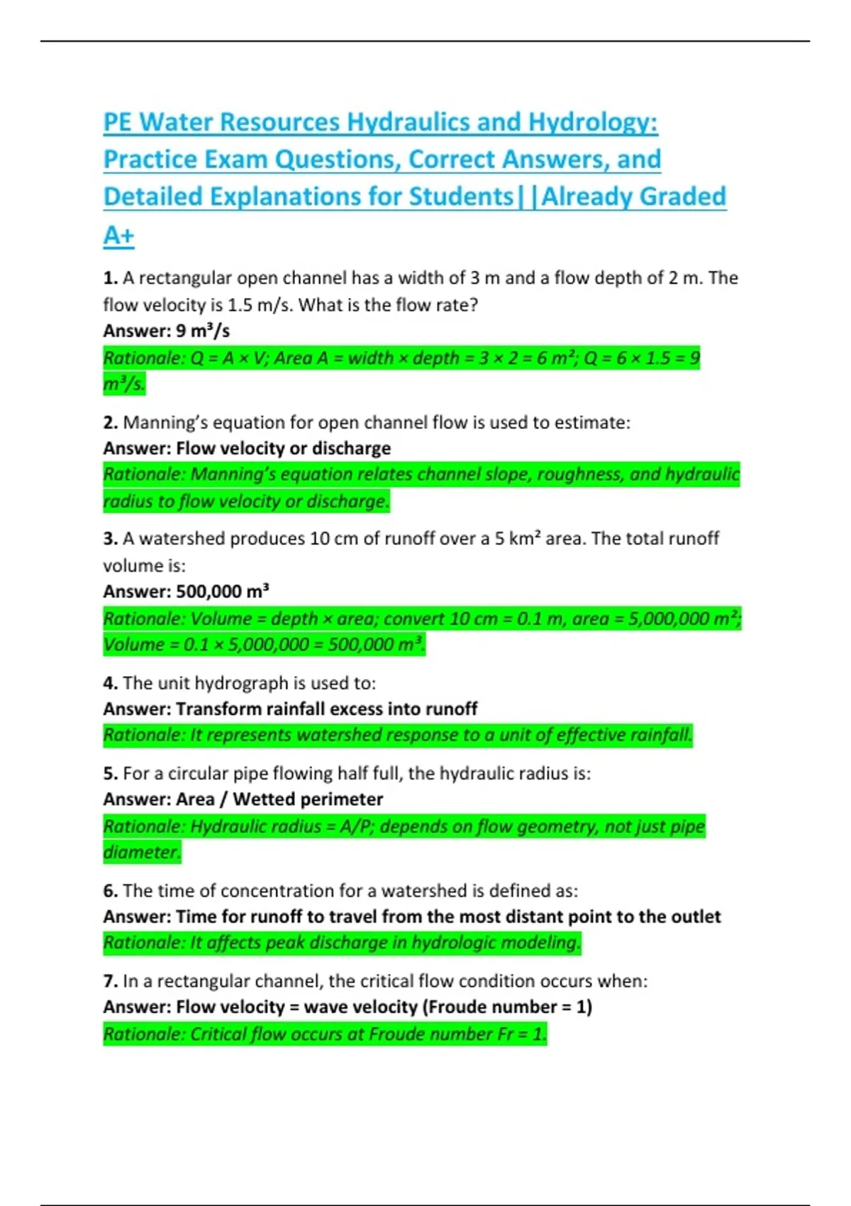 PE Water Resources Hydraulics and Hydrology:
