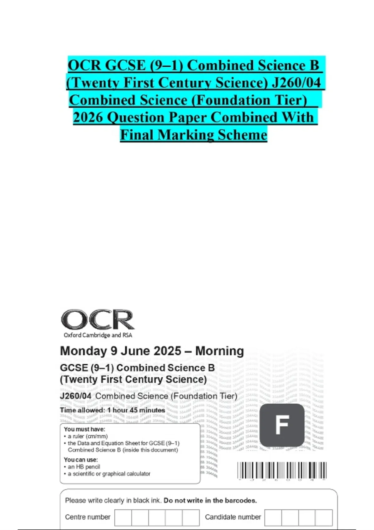OCR GCSE (9–1) Combined Science B (Twenty First Century Science) J260/04 Combined Science (Foundation Tier) 2026 Question Paper Combined With Final Marking Scheme