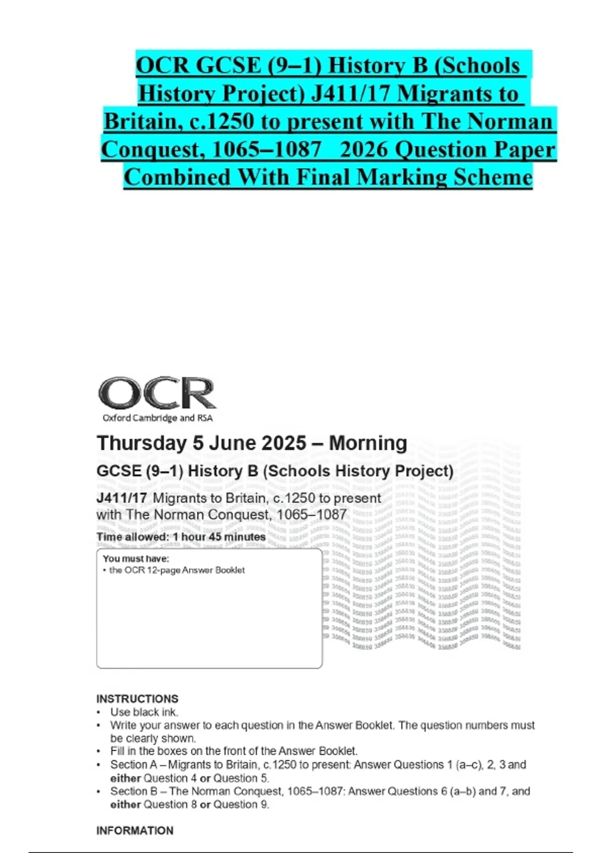 OCR GCSE (9–1) History B (Schools History Project) J411/17 Migrants to Britain, c.1250 to present with The Norman Conquest, 1065– Question Paper Combined With Final Marking Scheme