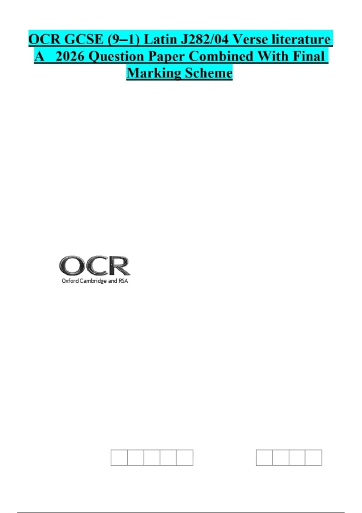 OCR GCSE (9–1) Latin J282/04 Verse literature A 2026 Question Paper Combined With Final Marking Scheme