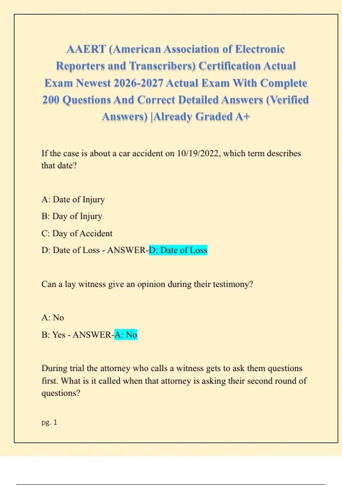 D: Date of Loss - ANSWER-D: Date of Loss