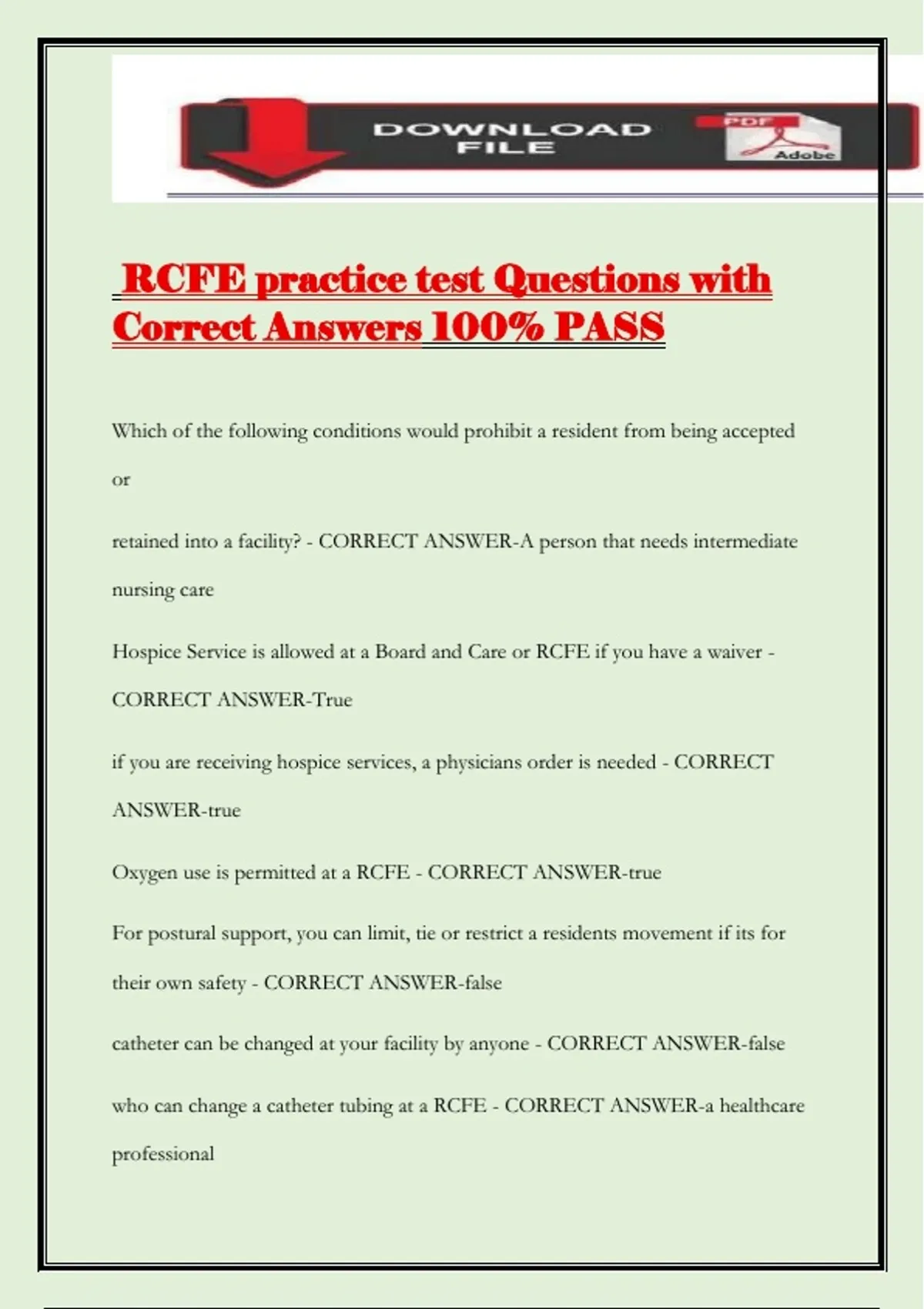 RCFE practice test Questions with