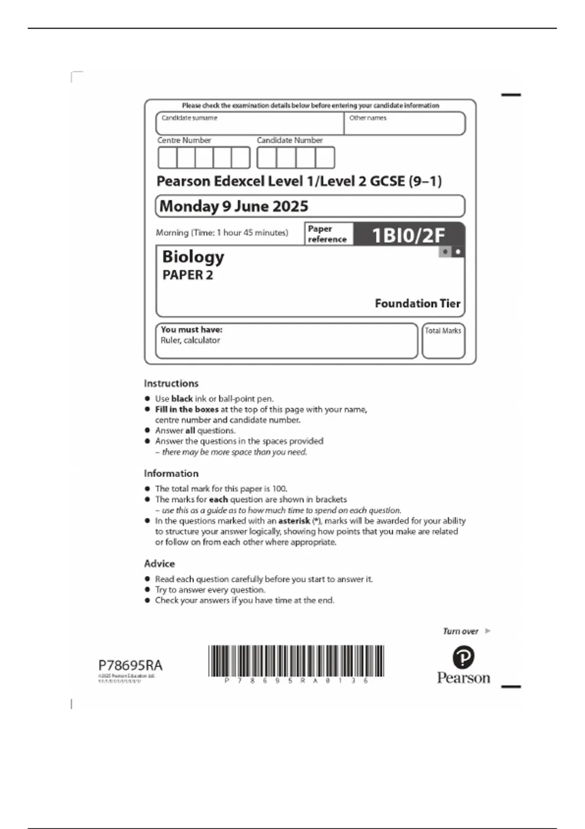 gcse edexcel biology paper 2f (foundation tier )2025 exam merged with mark scheme