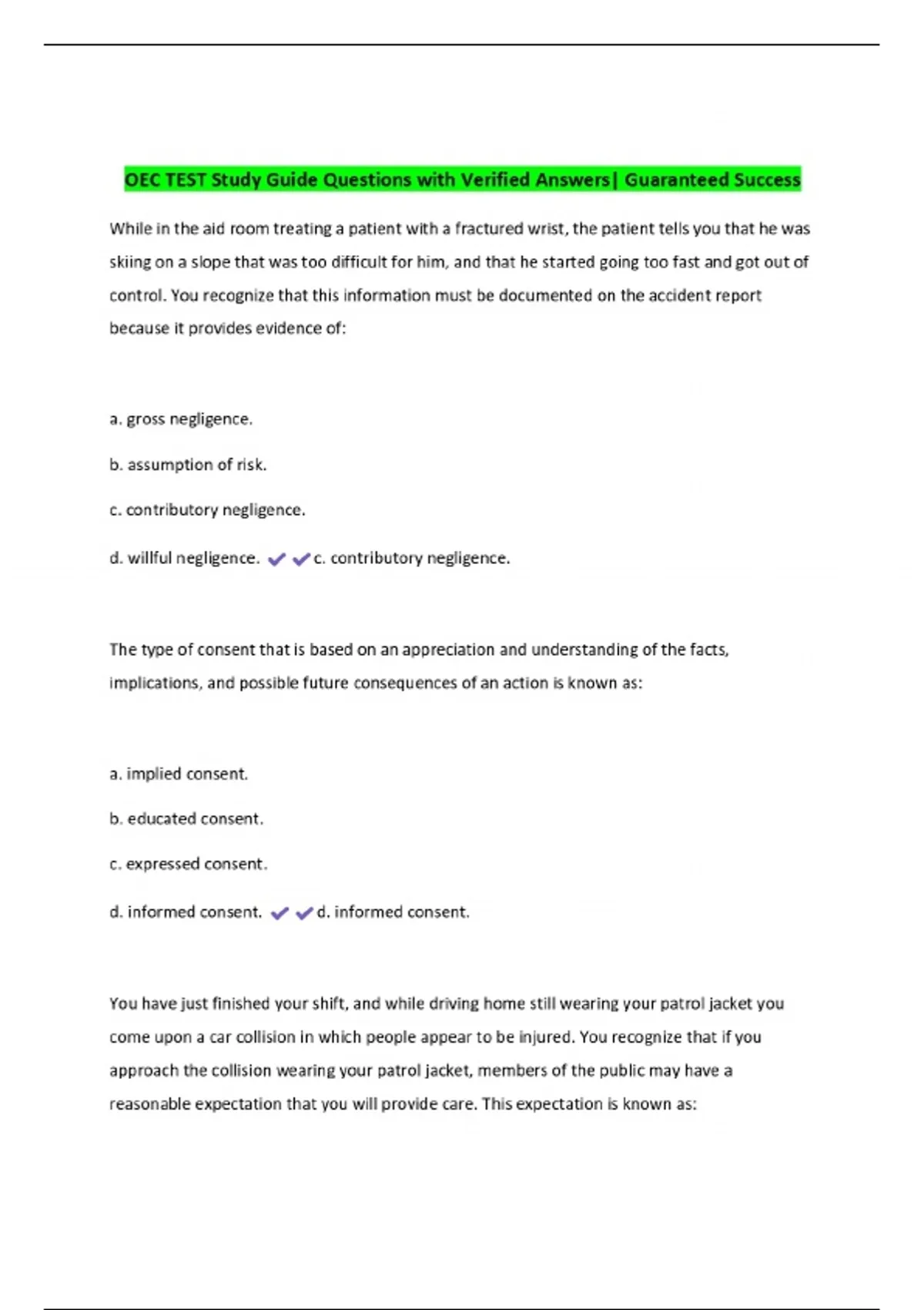 OEC TEST Study Guide Questions with Verified Answers| Guaranteed Success