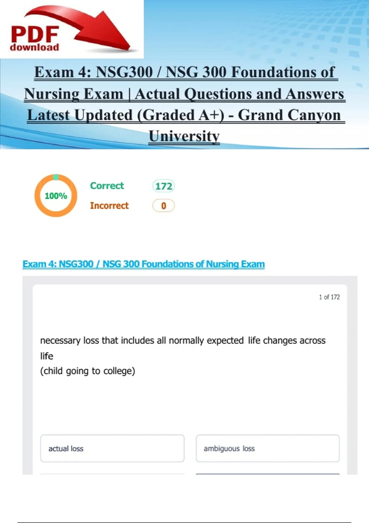Exam 4: NSG300 / NSG 300 Foundations of Nursing Exam