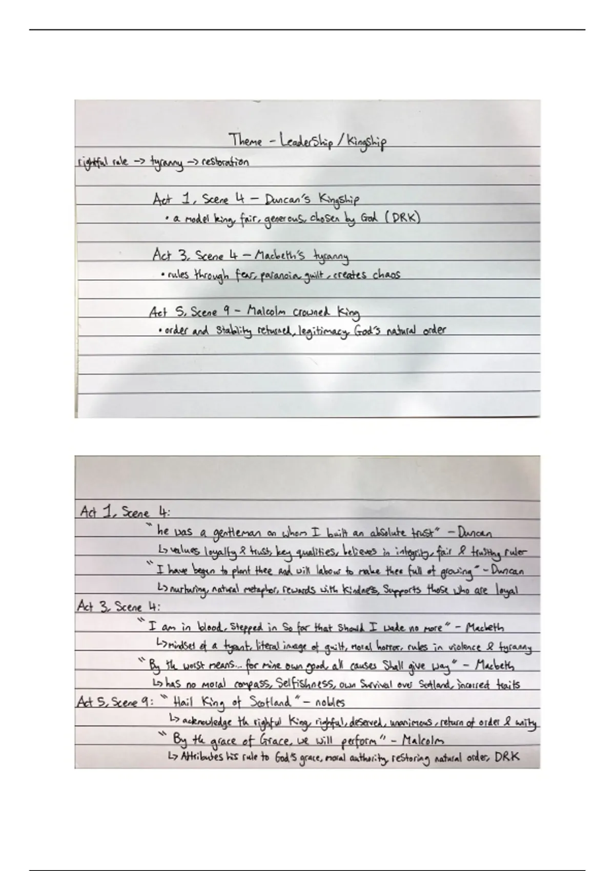 Grade 9 Flashcards for all of the main themes in Macbeth with main scenes, quotations, and analysis for each theme with a clear development within that theme which is essential for a grade 9 essay. Includes Ambition, Masculinity, Violence/Tyranny, Order and Chaos, Evil, Equivocations, Supernatural, Reality vs Appearance, Guilt, Loyalty and Friendship, Leadership/Kingship. Unfortunately, I can't promise that there aren't any mistakes like spelling, however I do apologise if so.