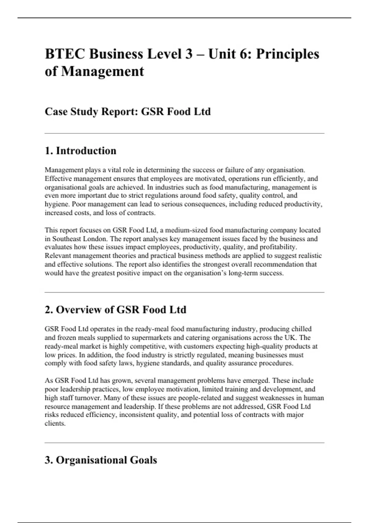 This report focuses on GSR Food Ltd, a medium-sized food manufacturing company located