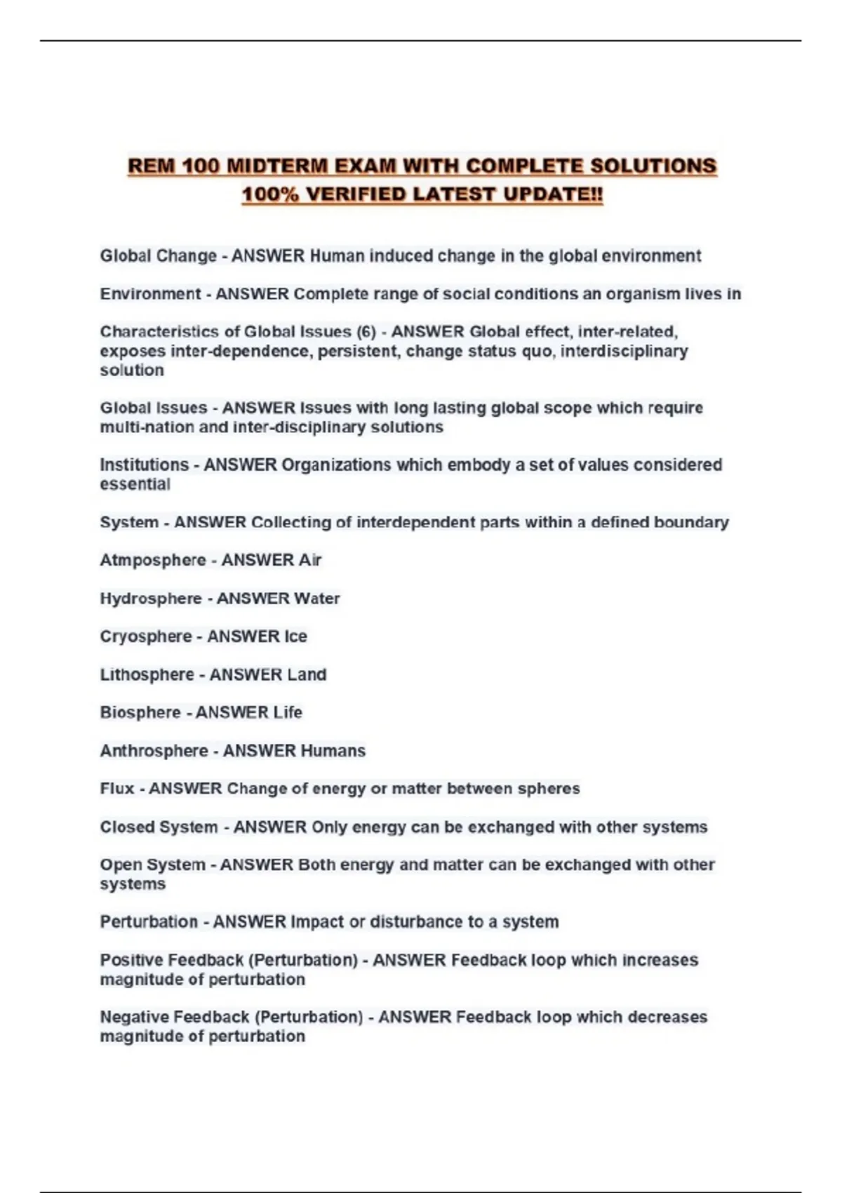 REM 100 MIDTERM EXAM WITH COMPLETE SOLUTIONS 100% VERIFIED LATEST UPDATE!!...