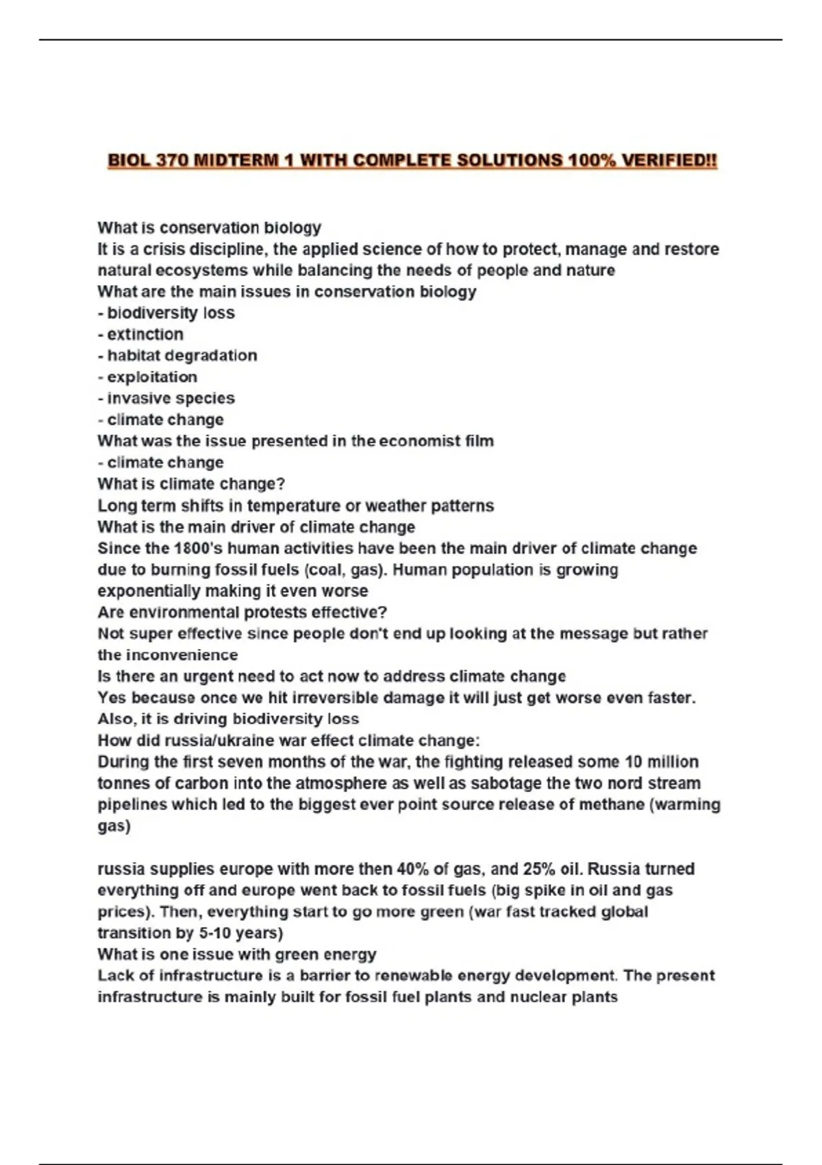 BIOL 370 MIDTERM 1 WITH COMPLETE SOLUTIONS 100% VERIFIED!!...