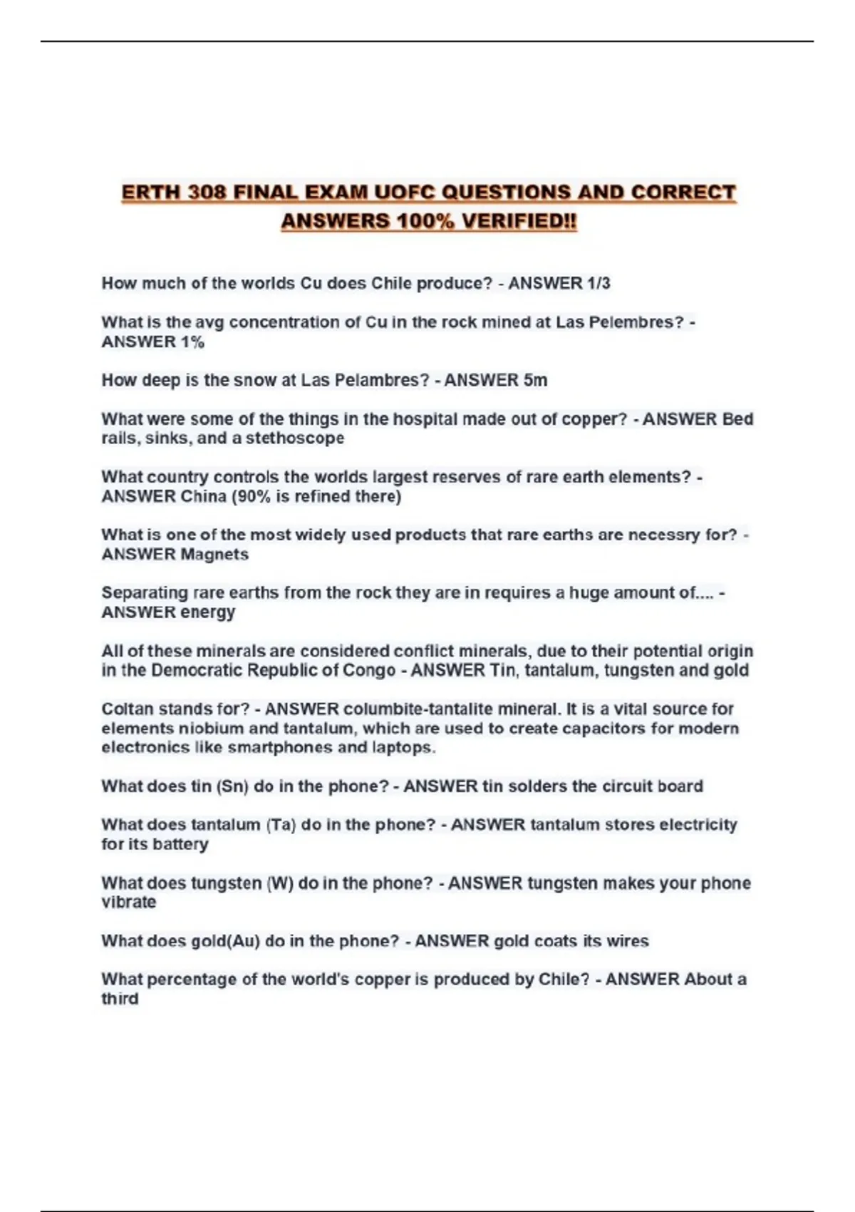 ERTH 308 FINAL EXAM UOFC QUESTIONS AND CORRECT ANSWERS 100% VERIFIED!!...