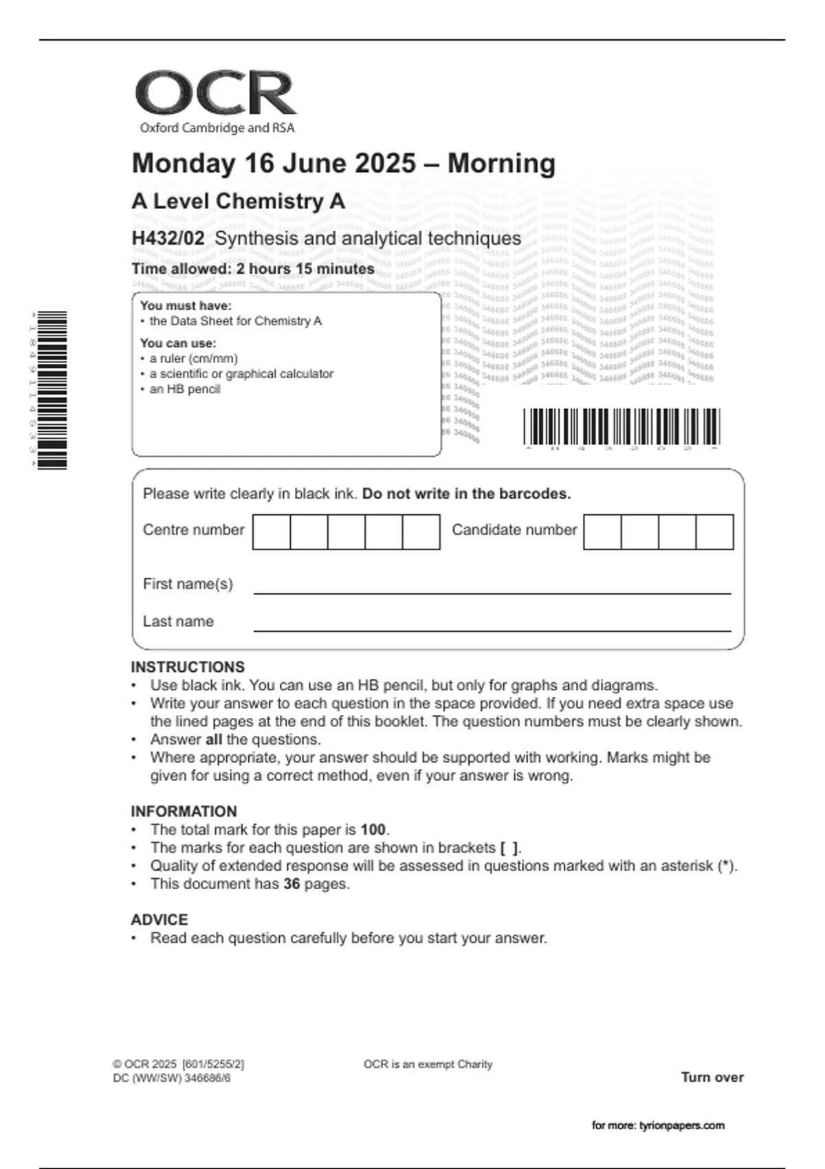 OCR A LEVEL CHEMISTRY A JUNE 2025 PAPER 2 MODEL ANSWERS WORKED SOLUTIONS