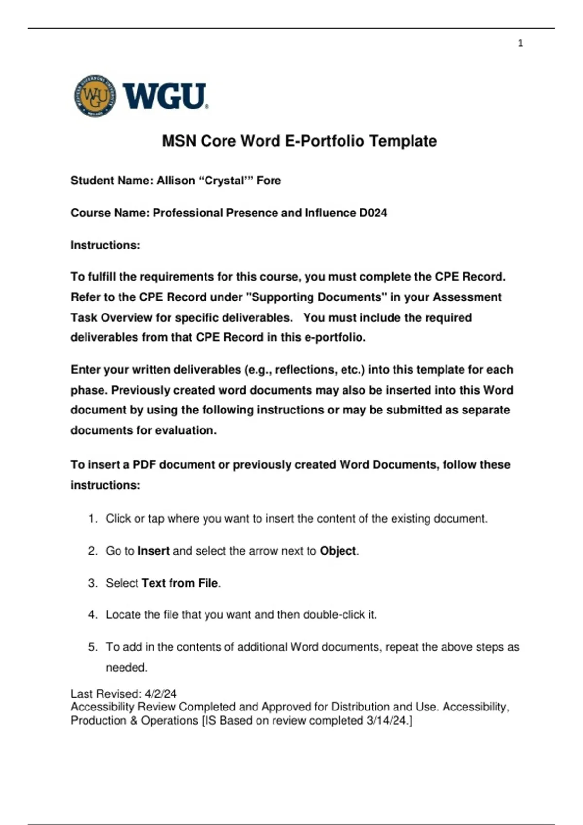 WGU D024 Task 1 | MSN Core Word E-Portfolio Template | 2025 Update with complete solutions.