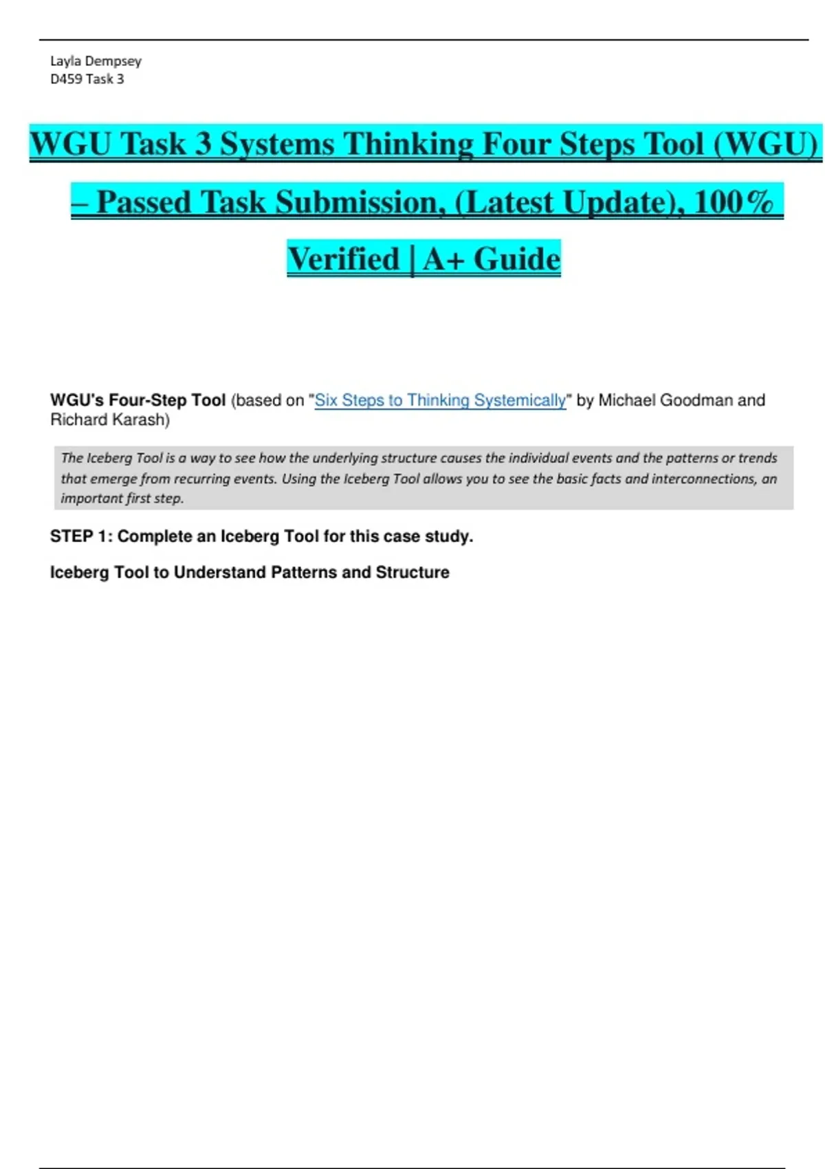 WGU Task 3 Systems Thinking Four Steps Tool (WGU) – Passed Task Submission, (Latest Update), 100% Verified | A+ Guide