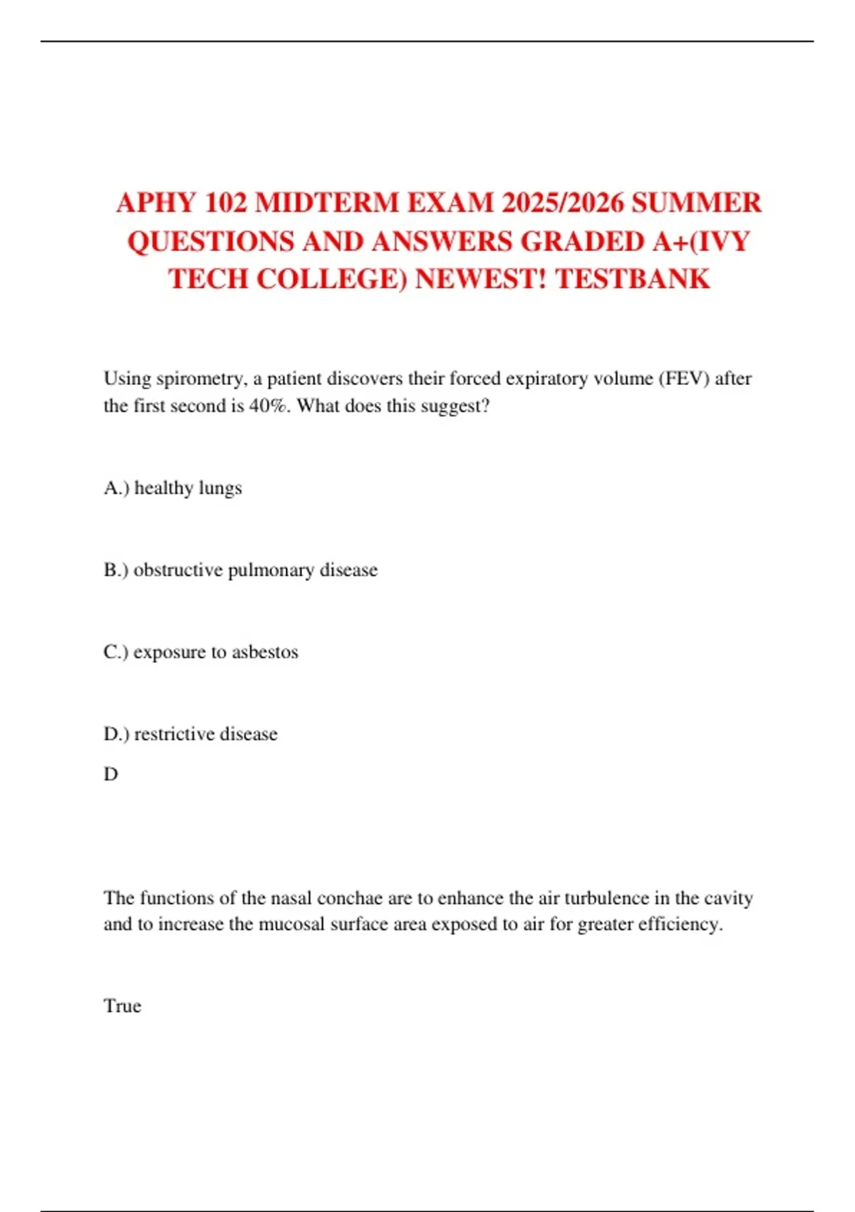 QUESTIONS AND ANSWERS GRADED A+(IVY