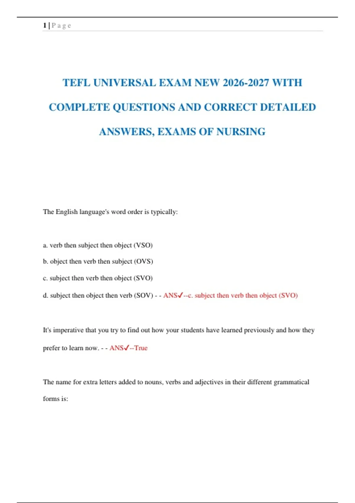 d. TEFL and EFL are perhaps the most common terms. - - ANS✔️--a. There should be more