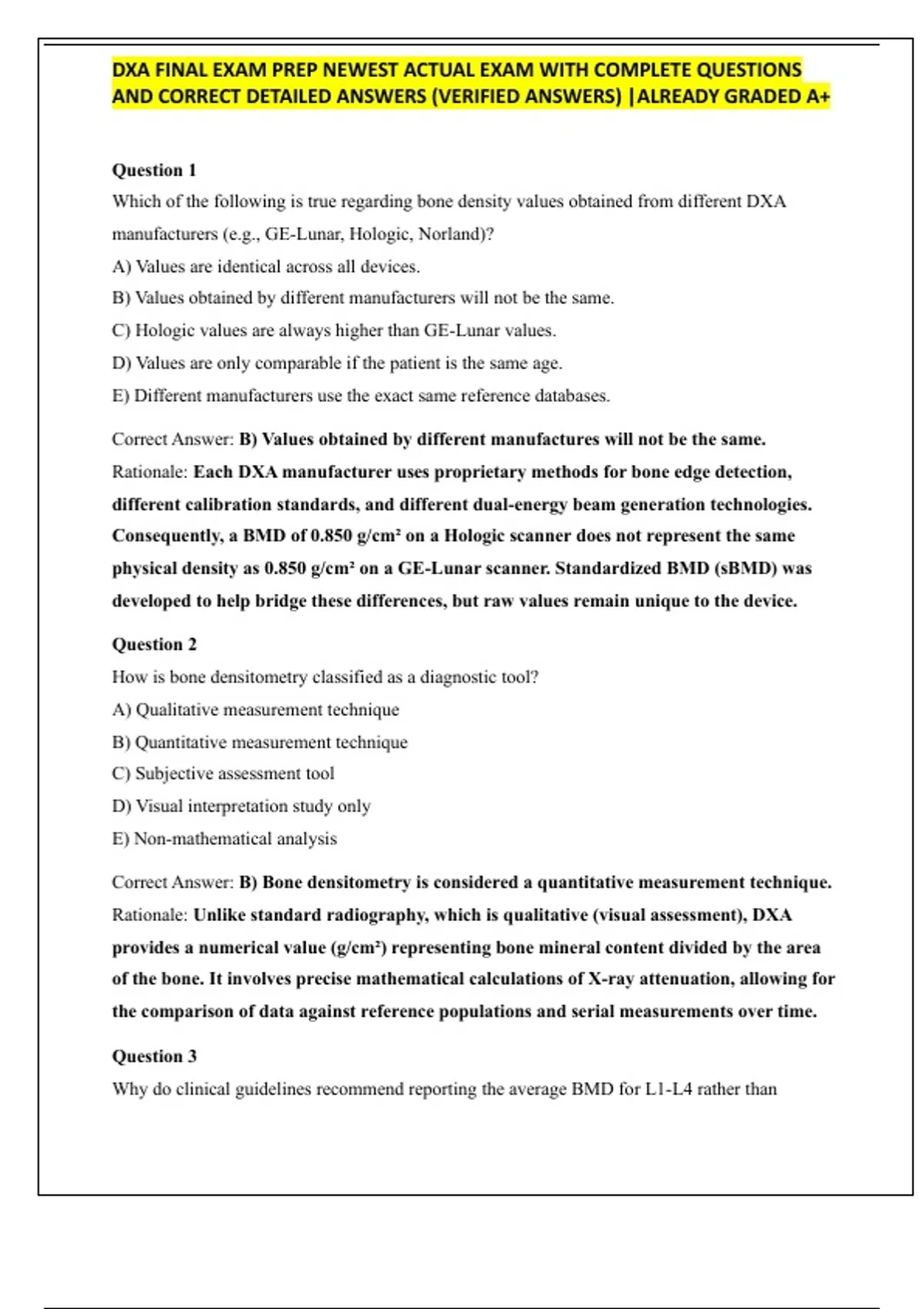 DXA FINAL EXAM PREP NEWEST ACTUAL EXAM WITH COMPLETE QUESTIONS