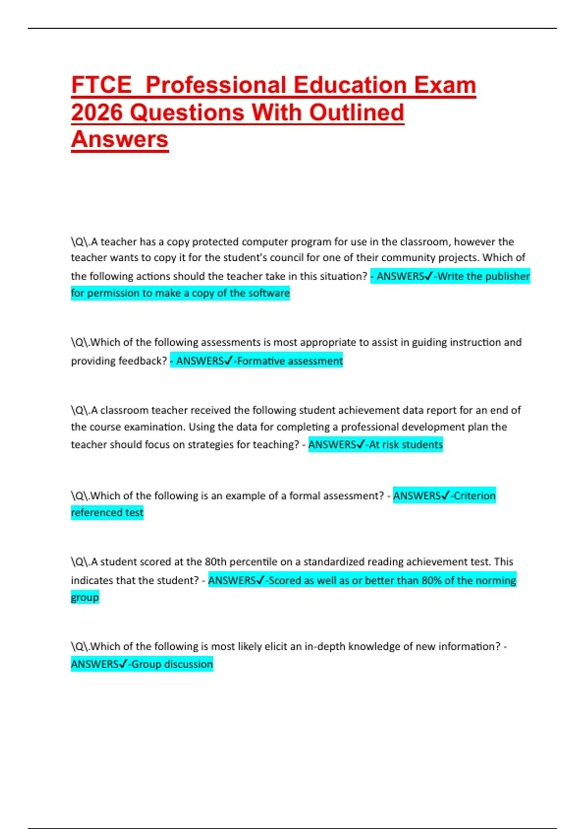 \Q\.Which of the following is an example of a formal assessment? - ANSWERS✔-Criterion