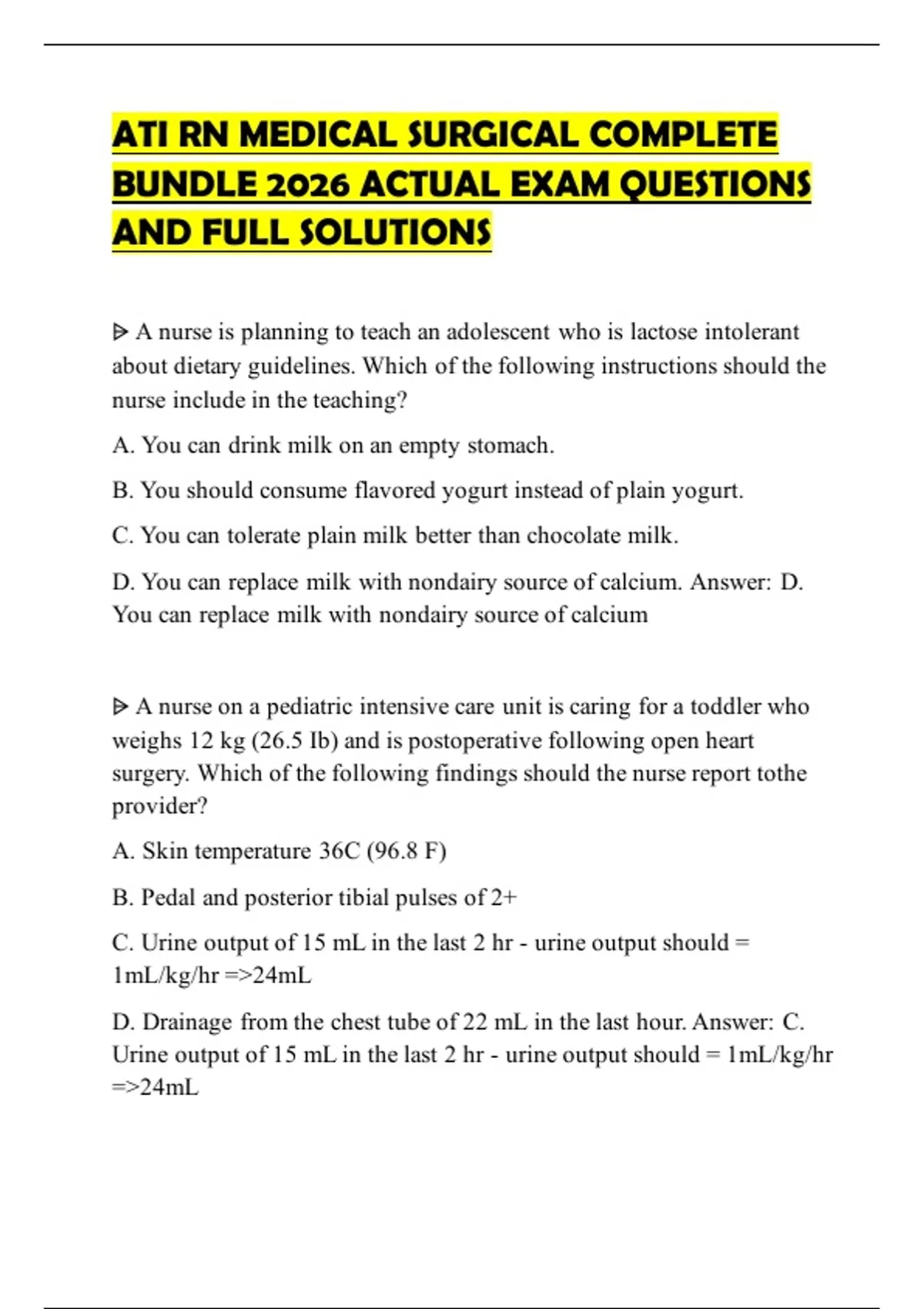 ATI RN MEDICAL SURGICAL COMPLETE BUNDLE 2026 ACTUAL EXAM QUESTIONS AND FULL SOLUTIONS