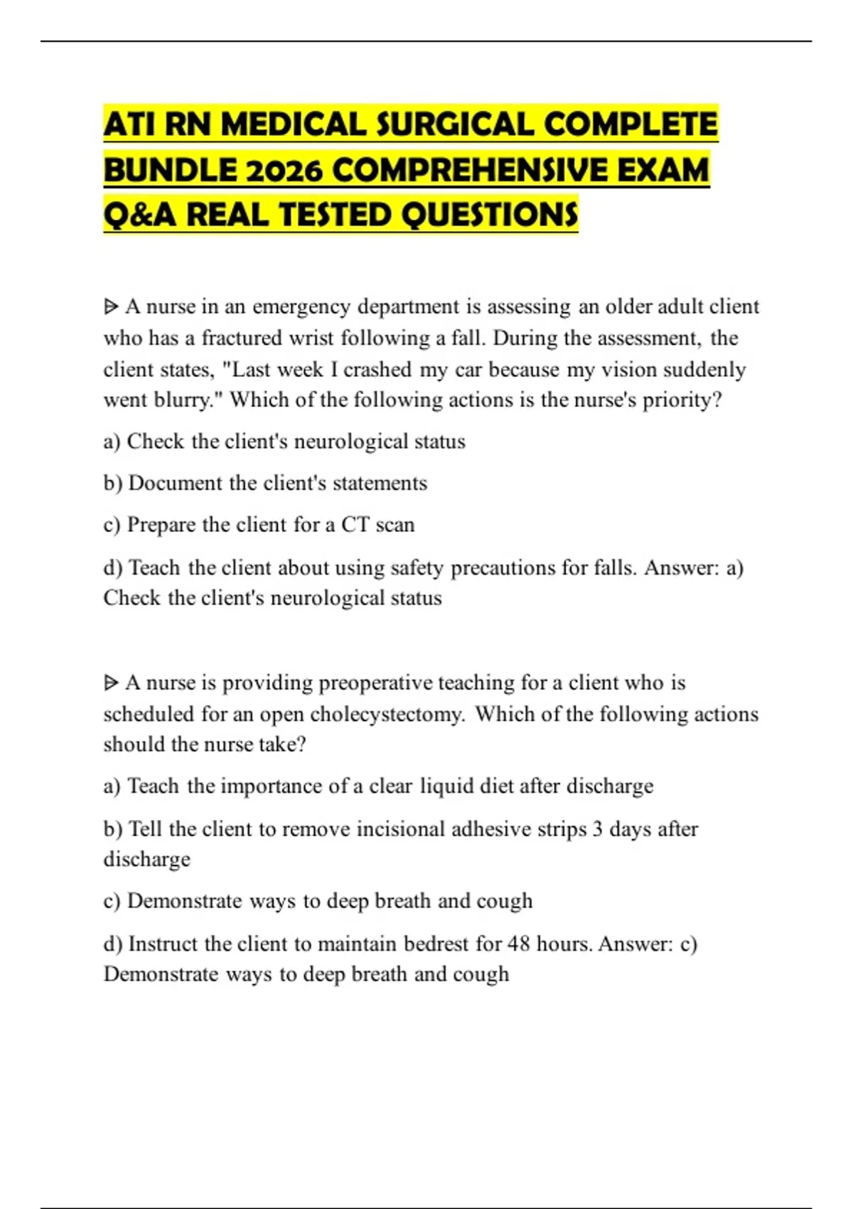 ATI RN MEDICAL SURGICAL COMPLETE BUNDLE 2026 COMPREHENSIVE EXAM Q&A REAL TESTED QUESTIONS