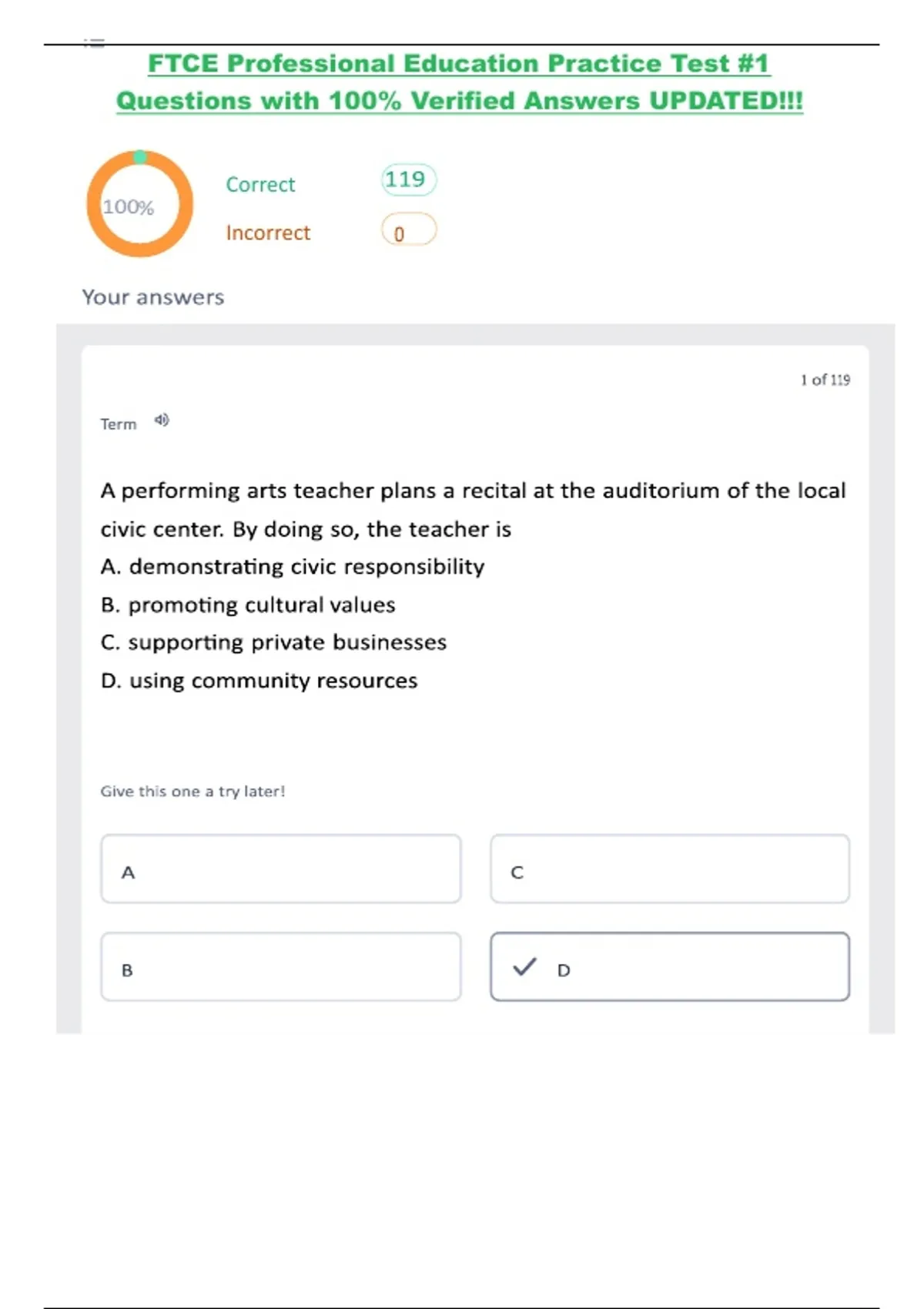 FTCE Professional Education Practice Test -1 Questions with 100% Verified Answers UPDATED!!!.
