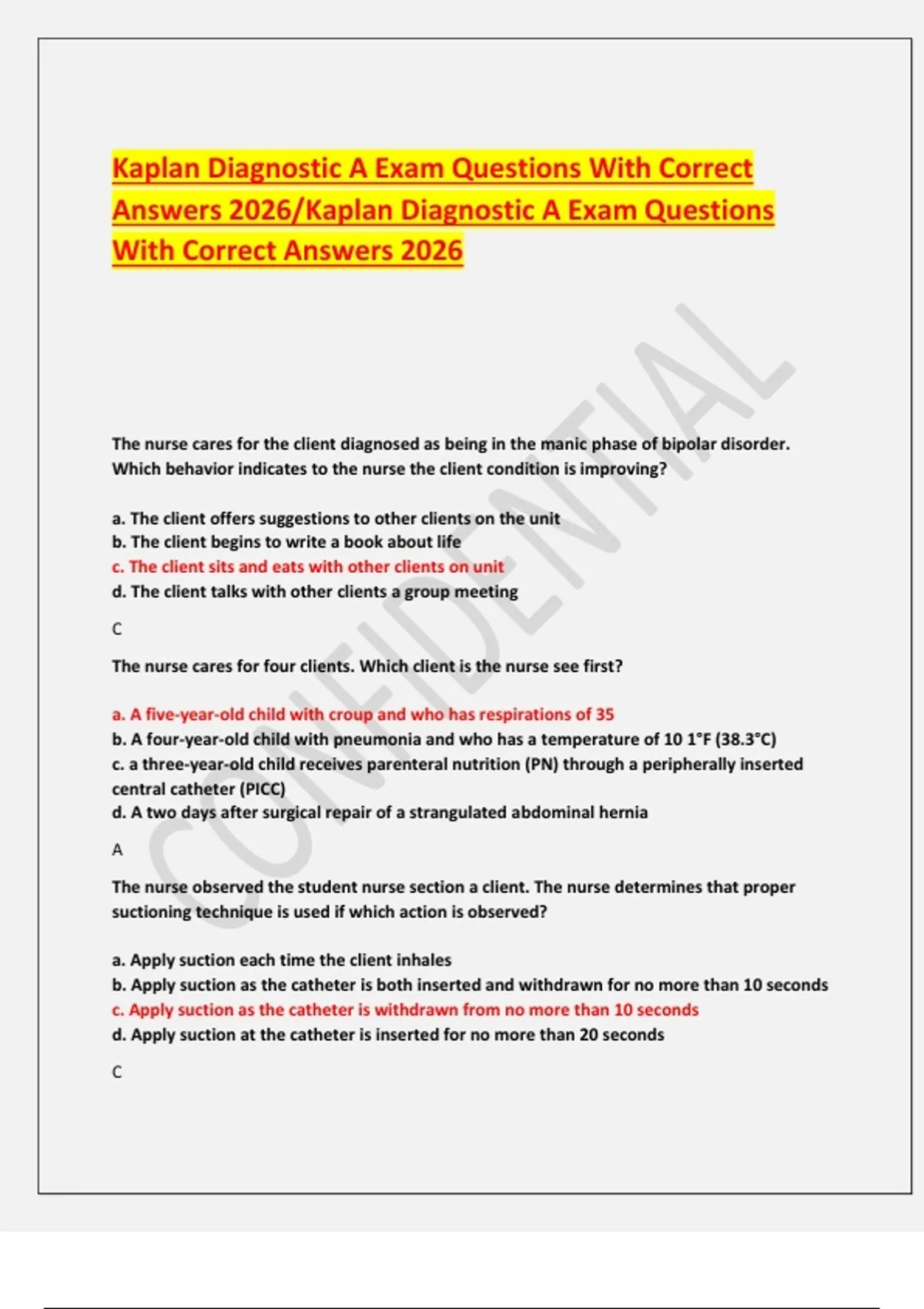 Answers 2026/Kaplan Diagnostic A Exam Questions
