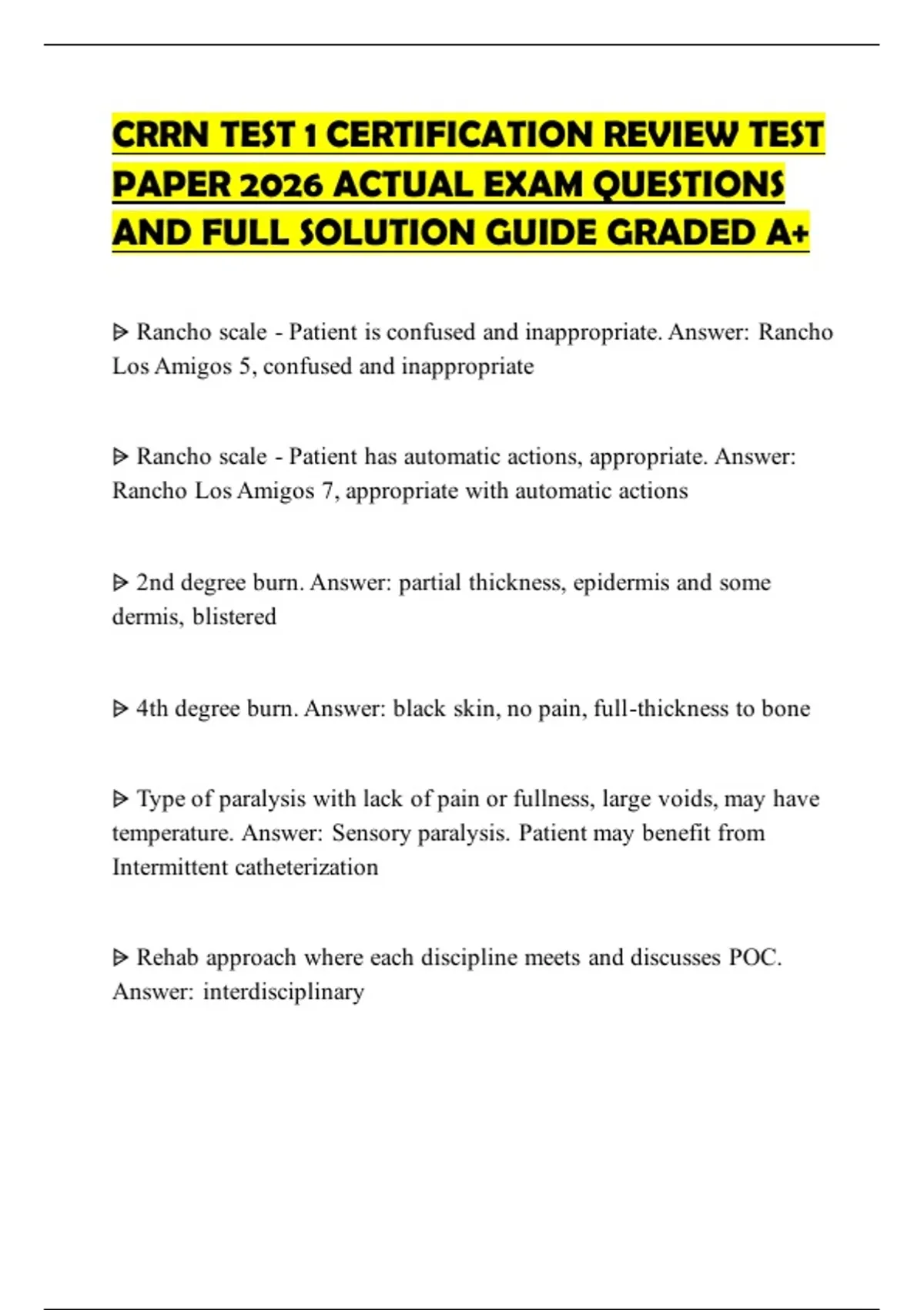 ⩥ Rancho scale - Patient does not respond to stimuli. Answer: Rancho