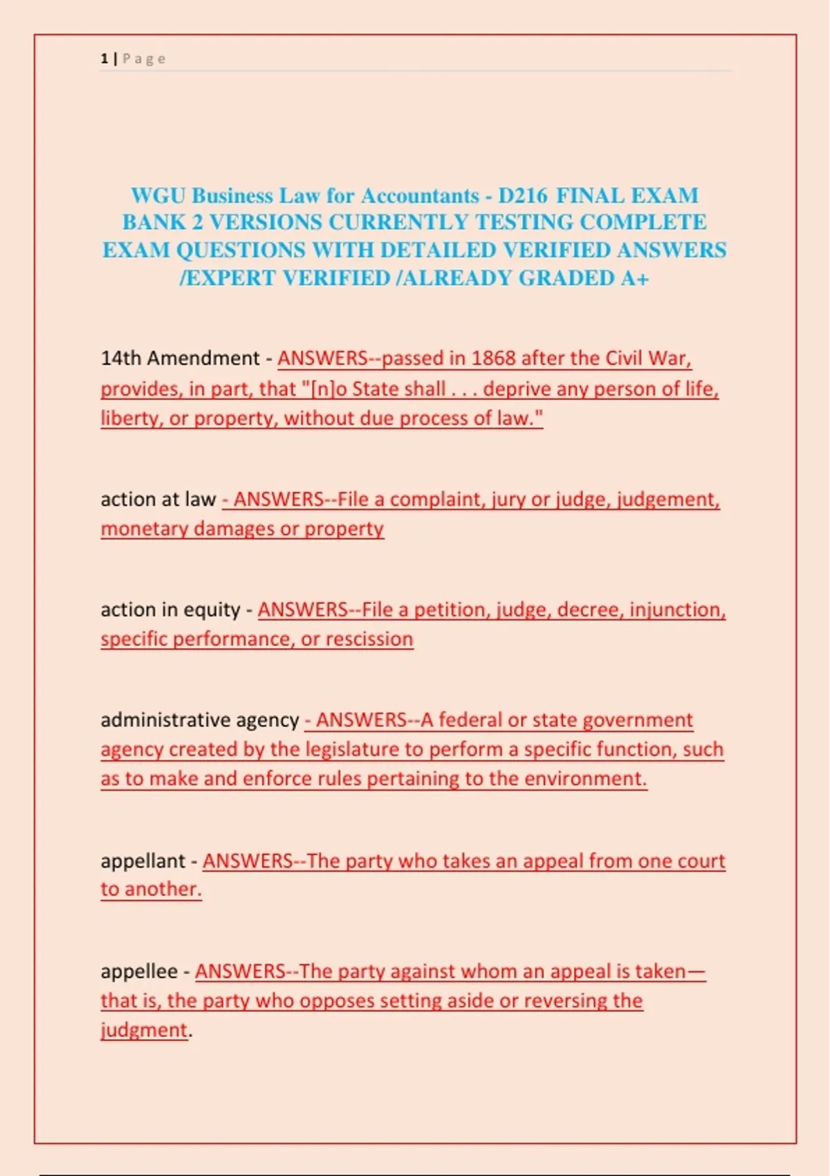 WGU Business Law for Accountants - D216 FINAL EXAM