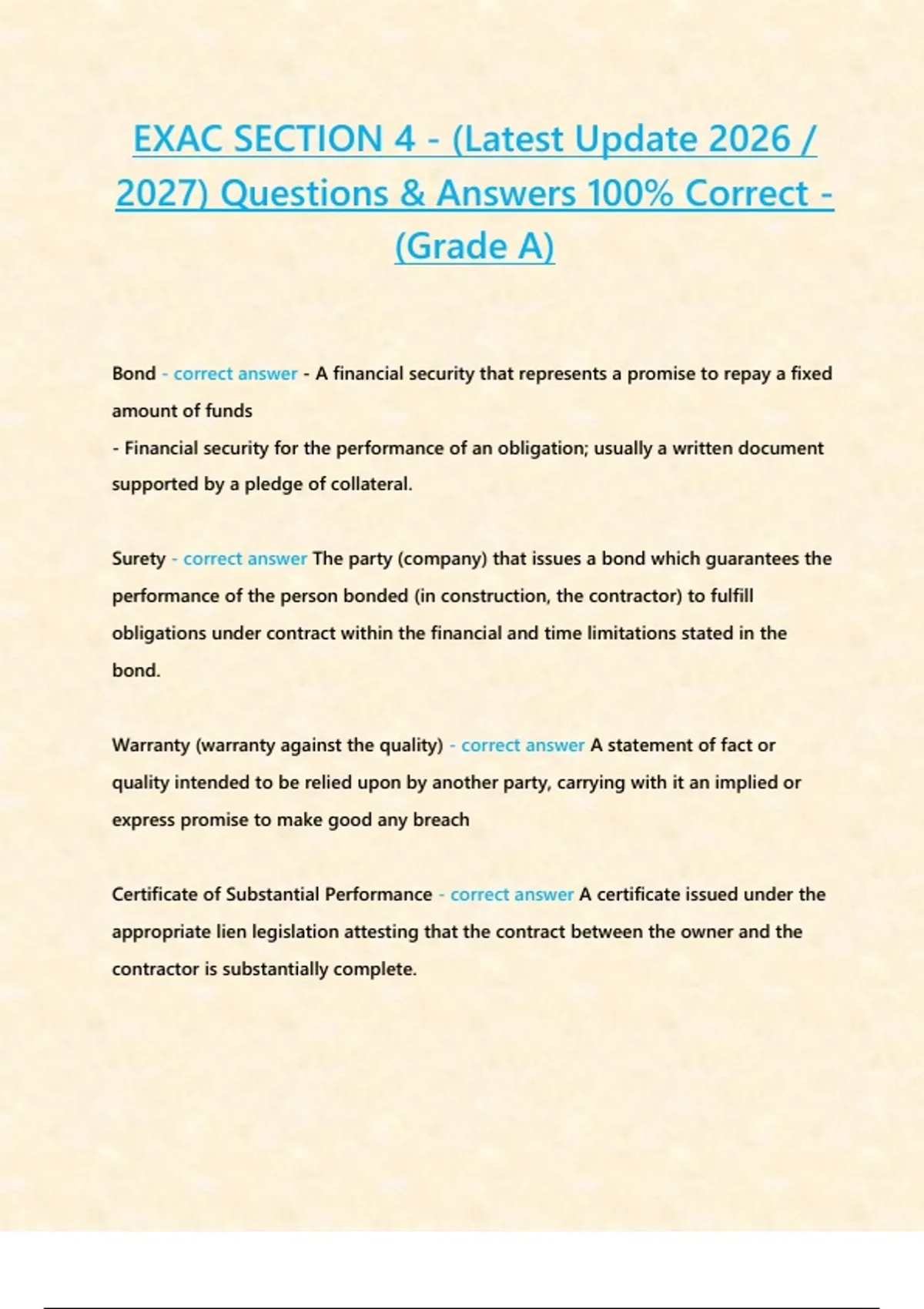 Certificate of Substantial Performance - correct answer A certificate issued under the