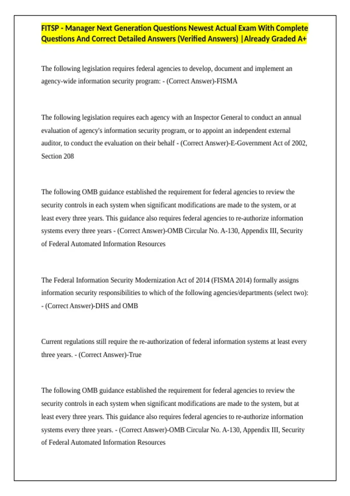 FITSP - Manager Next Generation Questions Newest Actual Exam With Complete