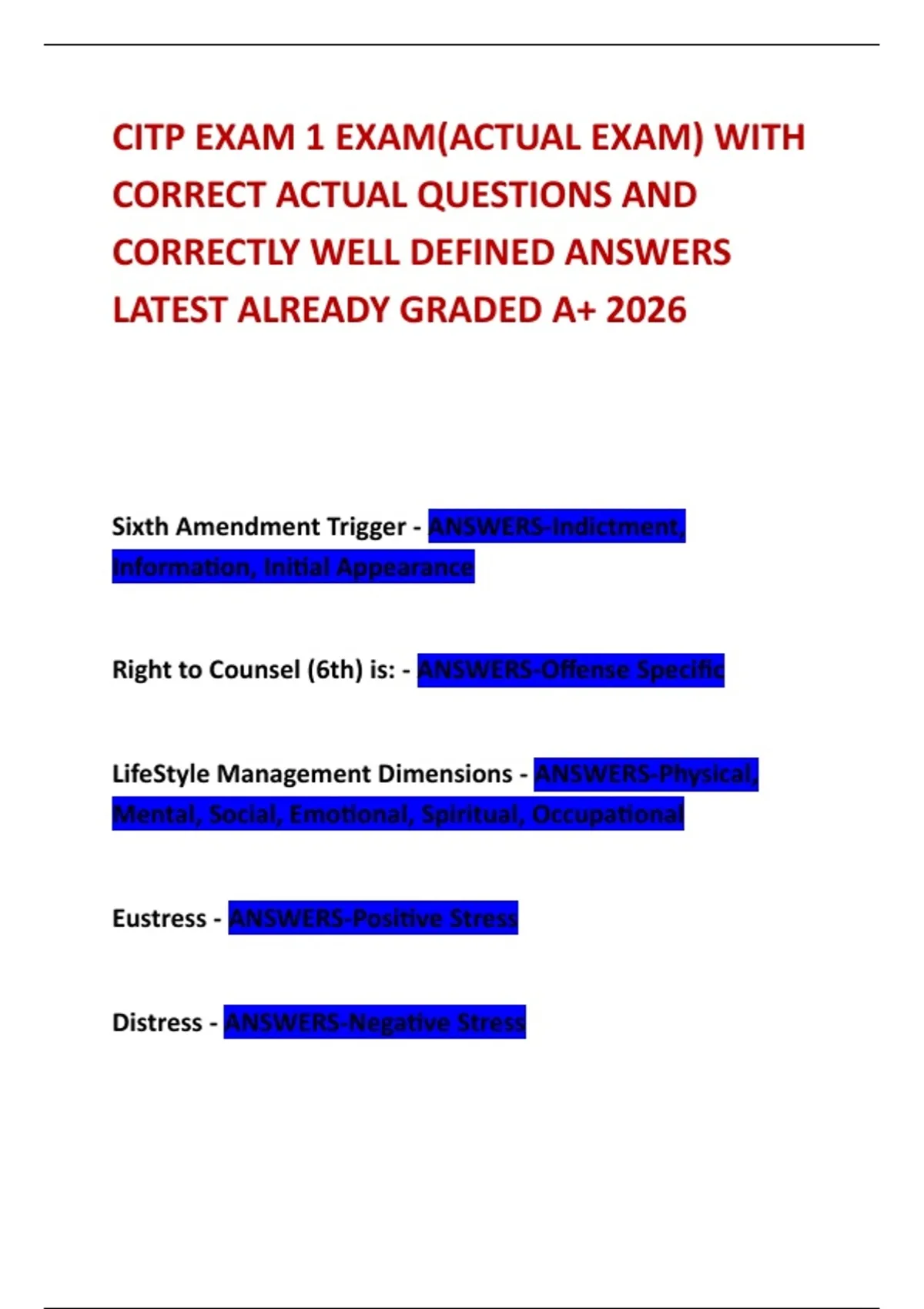 CITP EXAM 1 EXAM(ACTUAL EXAM) WITH CORRECT ACTUAL QUESTIONS AND CORRECTLY WELL DEFINED ANSWERS LATEST ALREADY GRADED A+ 2026