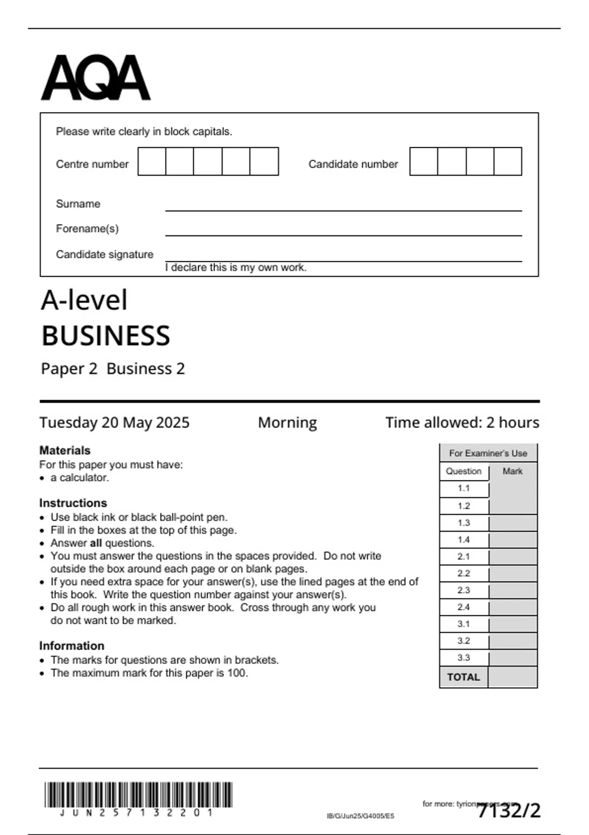 • The maximum mark for this paper is 100. TOTAL