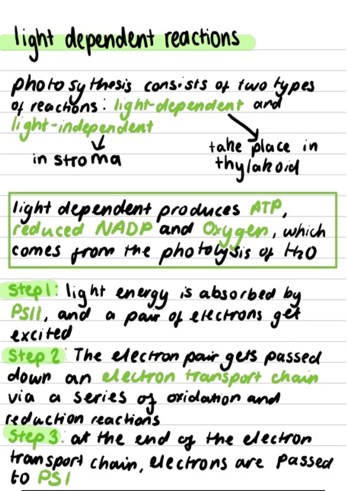 Summary A Level Biology for OCR A - Light dependent reaction