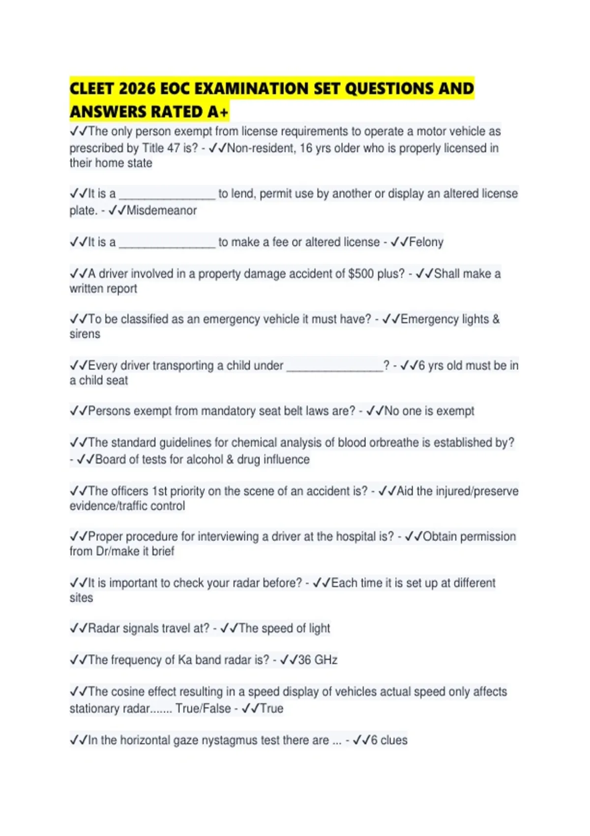CLEET 2026 EOC EXAMINATION SET QUESTIONS AND ANSWERS RATED A+