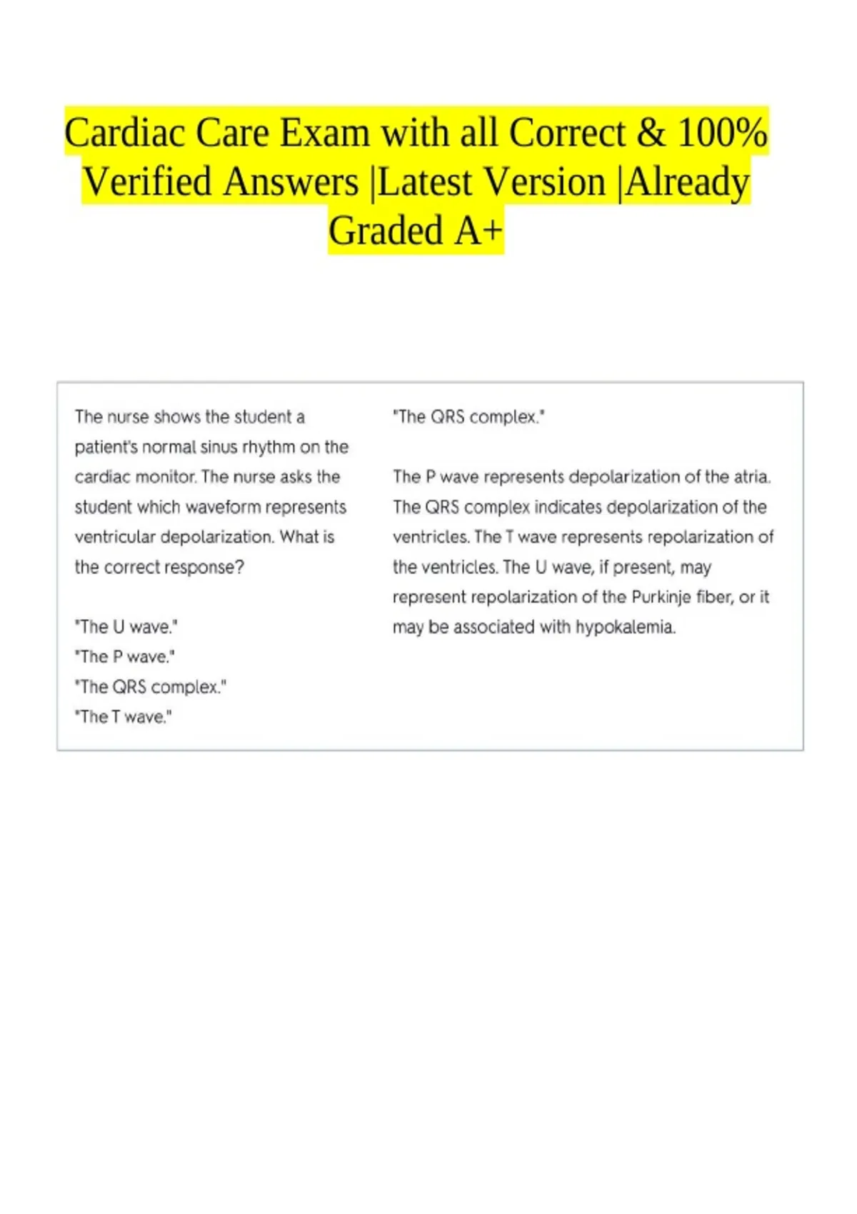 Cardiac Care Exam with all Correct & 100% Verified Answers |Latest Version |Already Graded A+