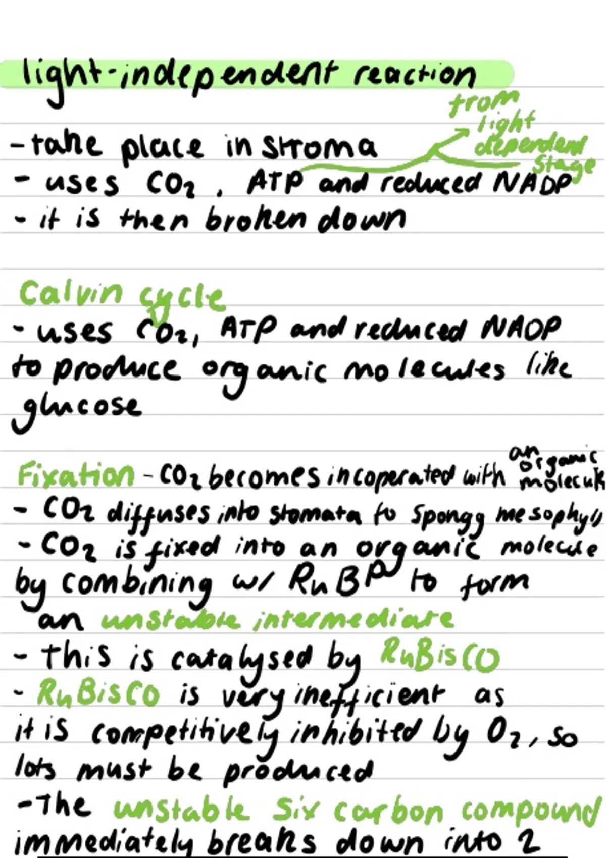 Light Independent Reaction summary A level Biology OCR A - a quick overview