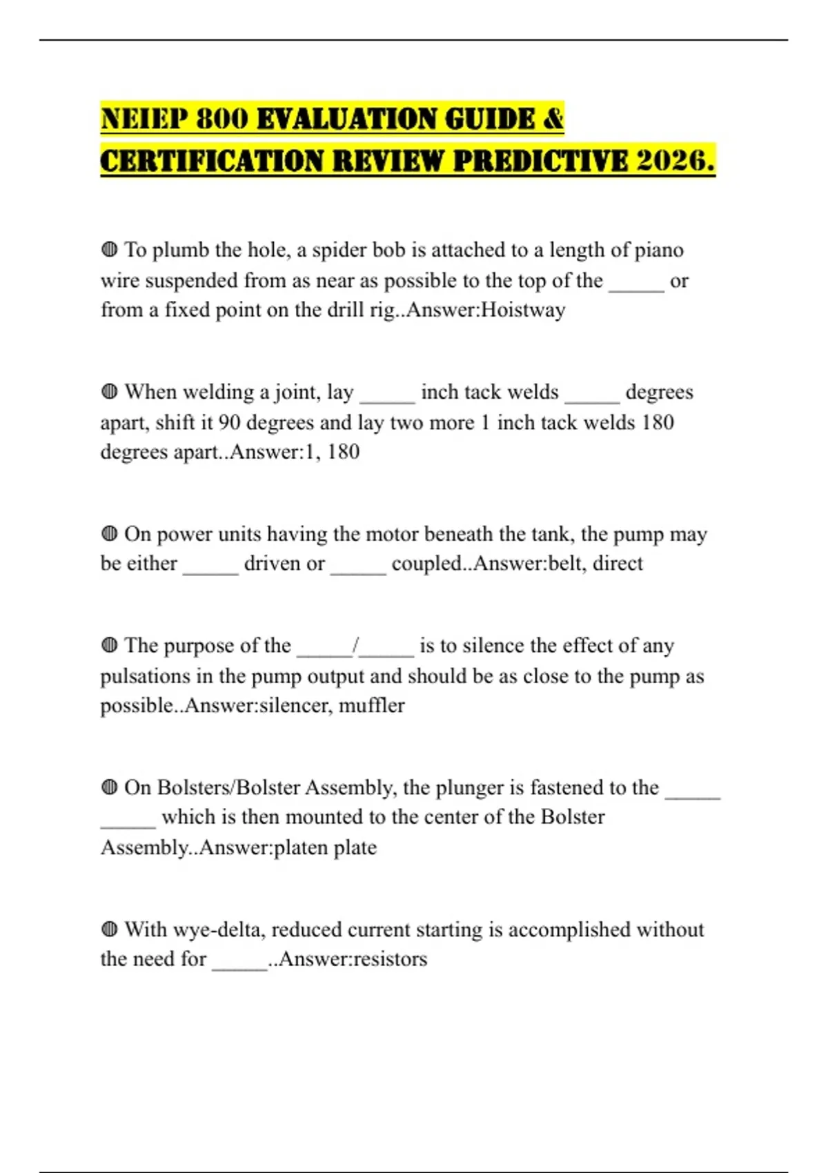 NEIEP 800 EVALUATION GUIDE & CERTIFICATION REVIEW PREDICTIVE 2026.