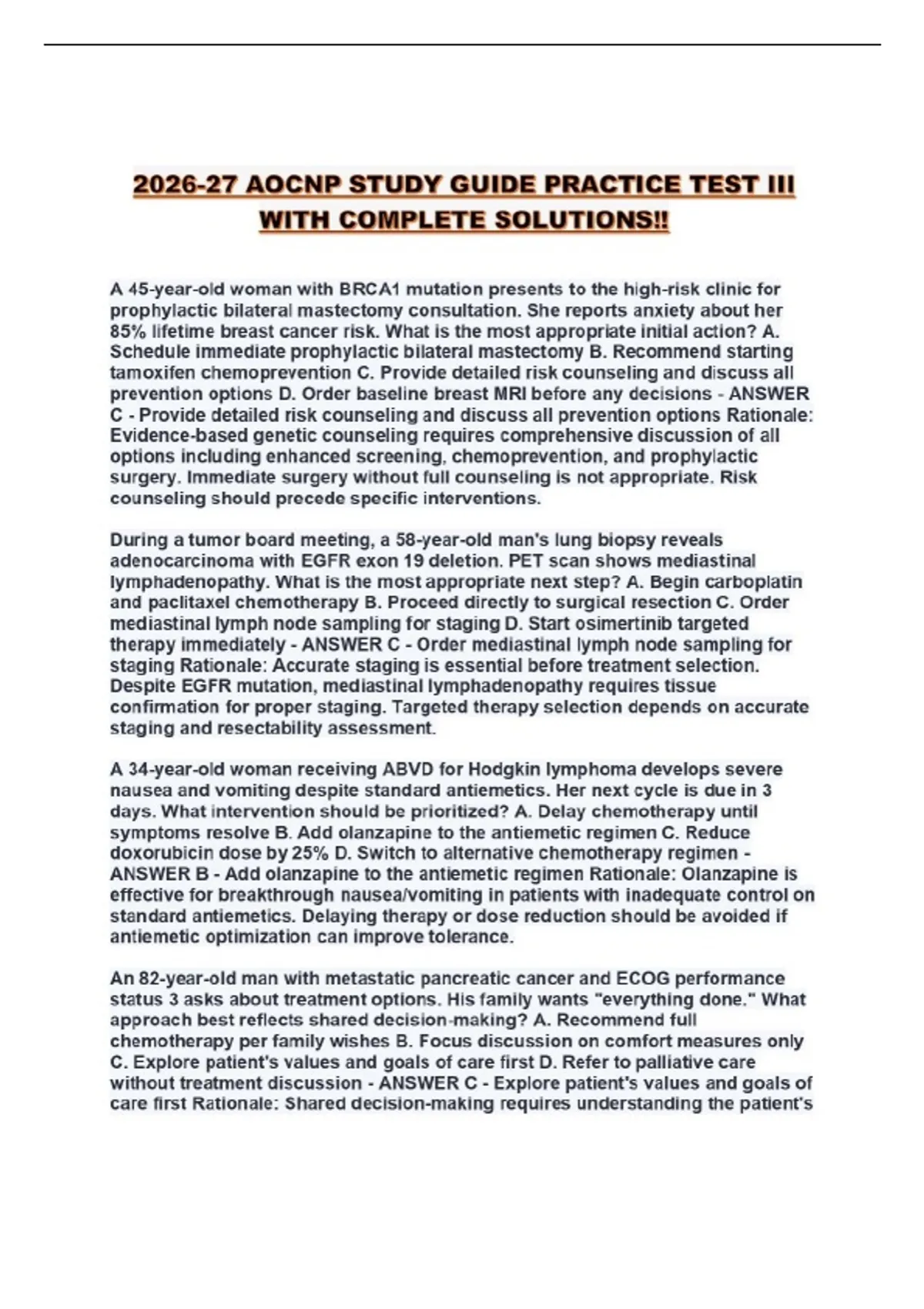 2026-27 AOCNP STUDY GUIDE PRACTICE TEST III WITH COMPLETE SOLUTIONS!!...
