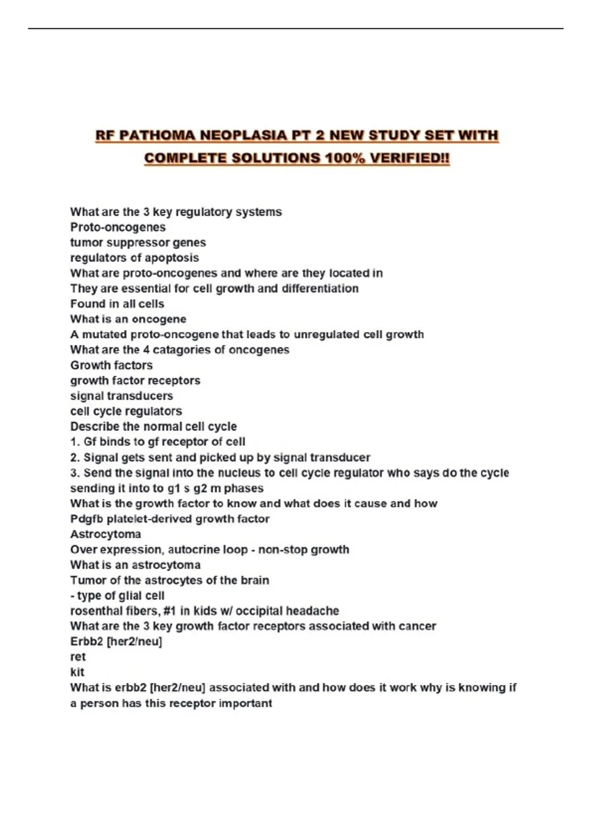 RF PATHOMA NEOPLASIA PT 2 NEW STUDY SET WITH COMPLETE SOLUTIONS 100% VERIFIED!!...