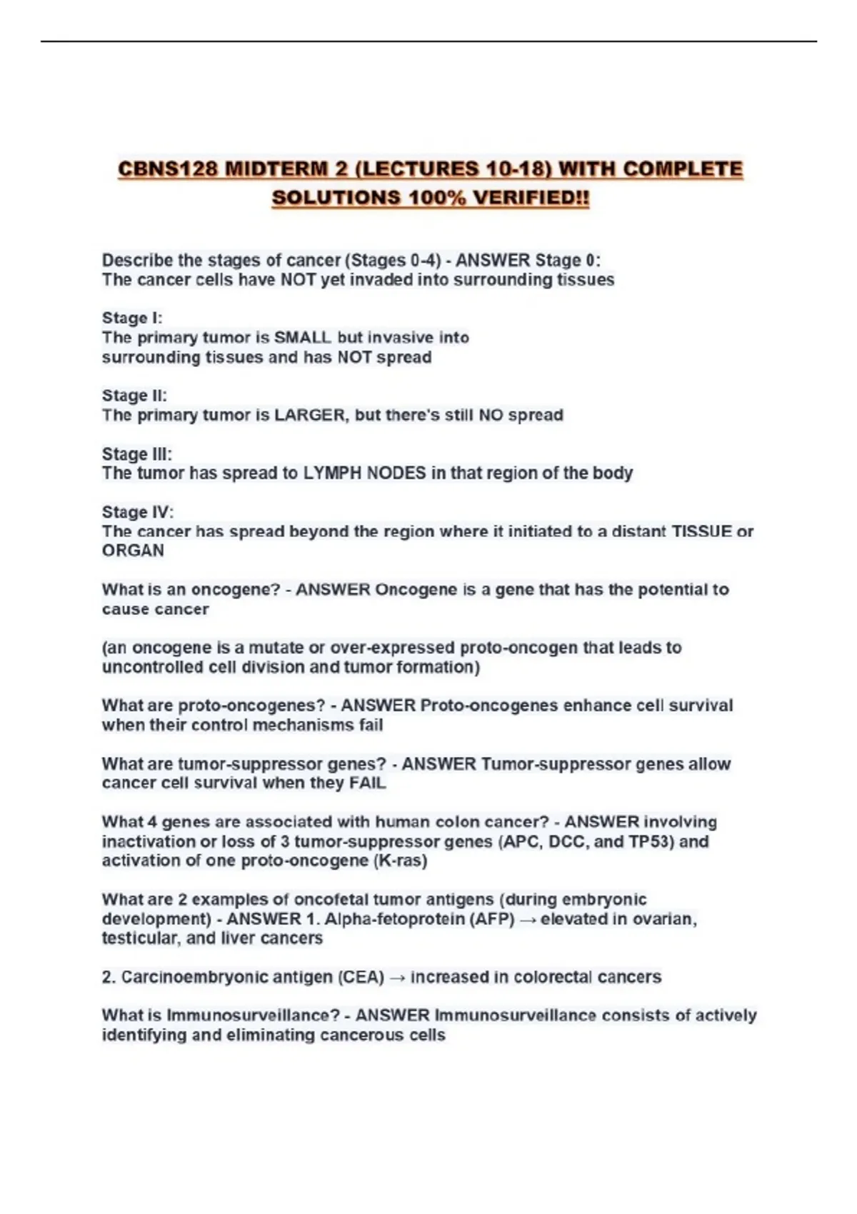 CBNS128 MIDTERM 2 (LECTURES 10-18) WITH COMPLETE SOLUTIONS 100% VERIFIED!!...