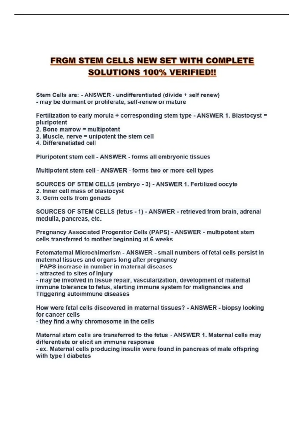 FRGM STEM CELLS NEW SET WITH COMPLETE SOLUTIONS 100% VERIFIED!!...