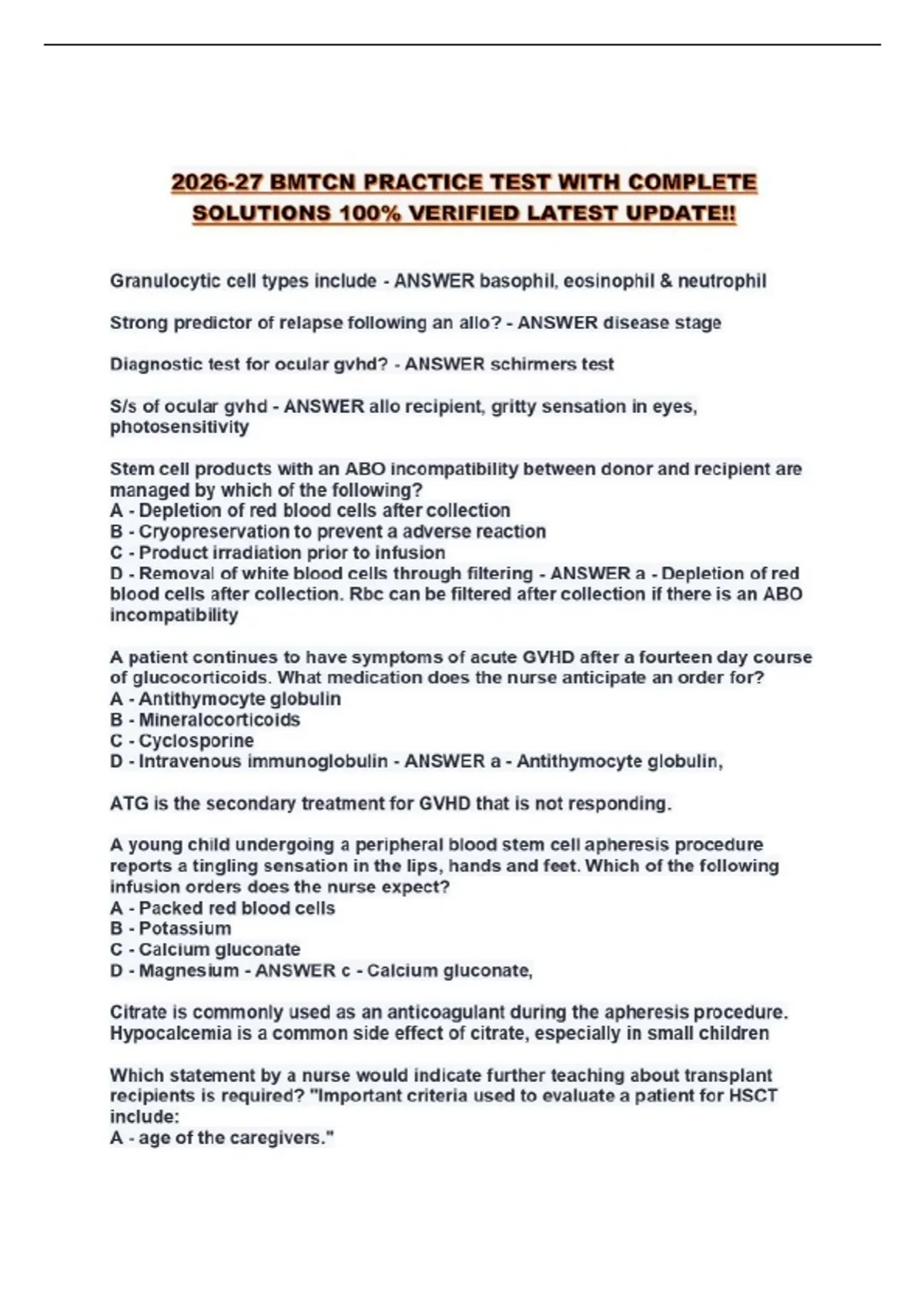 2026-27 BMTCN PRACTICE TEST WITH COMPLETE SOLUTIONS 100% VERIFIED LATEST UPDATE!!...