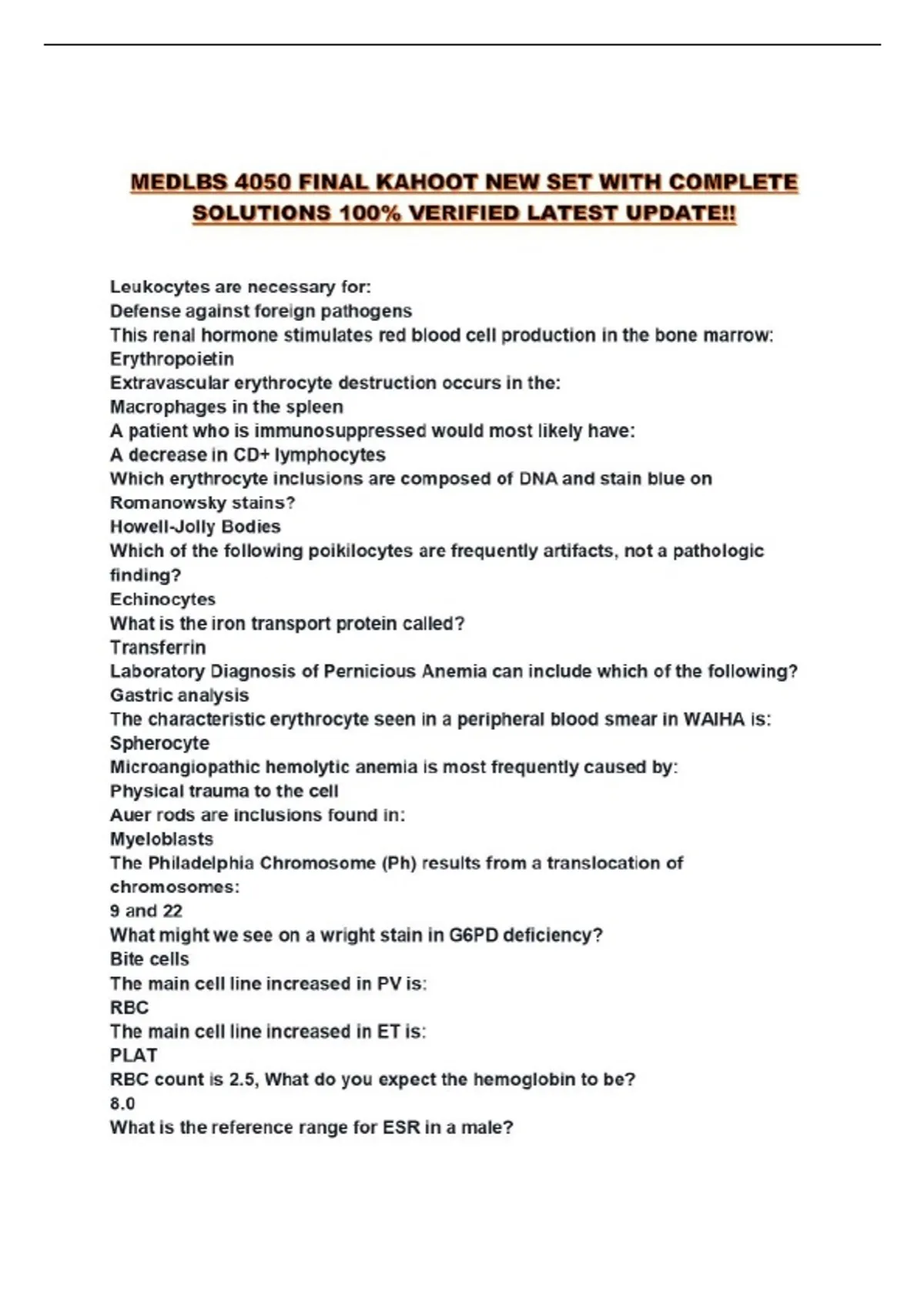 MEDLBS 4050 FINAL KAHOOT NEW SET WITH COMPLETE SOLUTIONS 100% VERIFIED LATEST UPDATE!!...