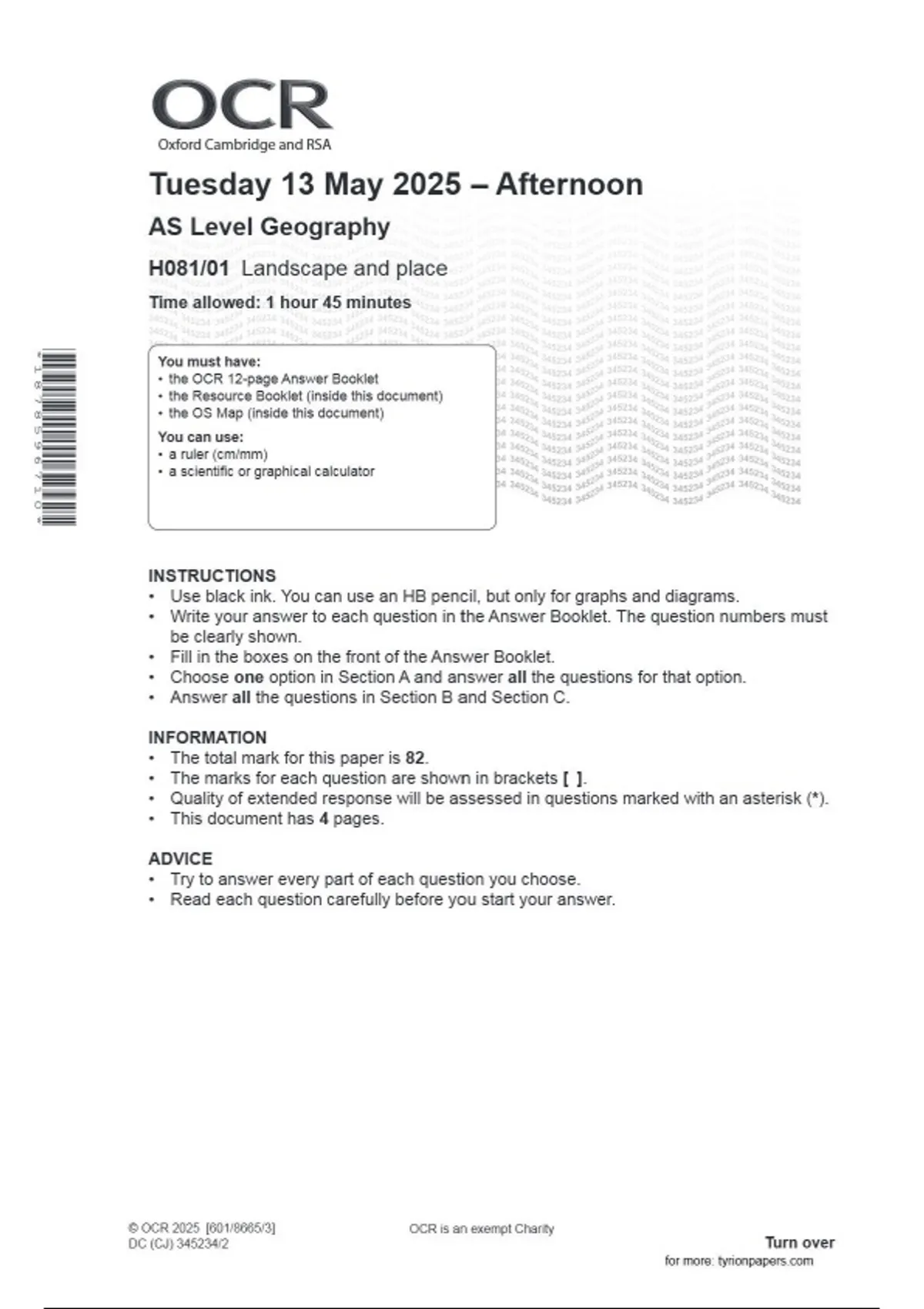 2025 OCR AS LEVEL GEOGRAPHY |H0 81_01| question paper |June 2025