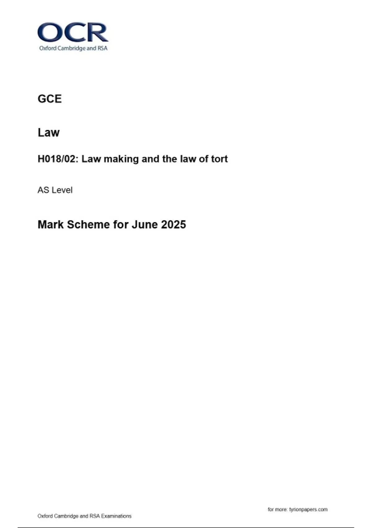 2025 OCR AS LEVEL LAW |H018_02)| final mark scheme |June 2025