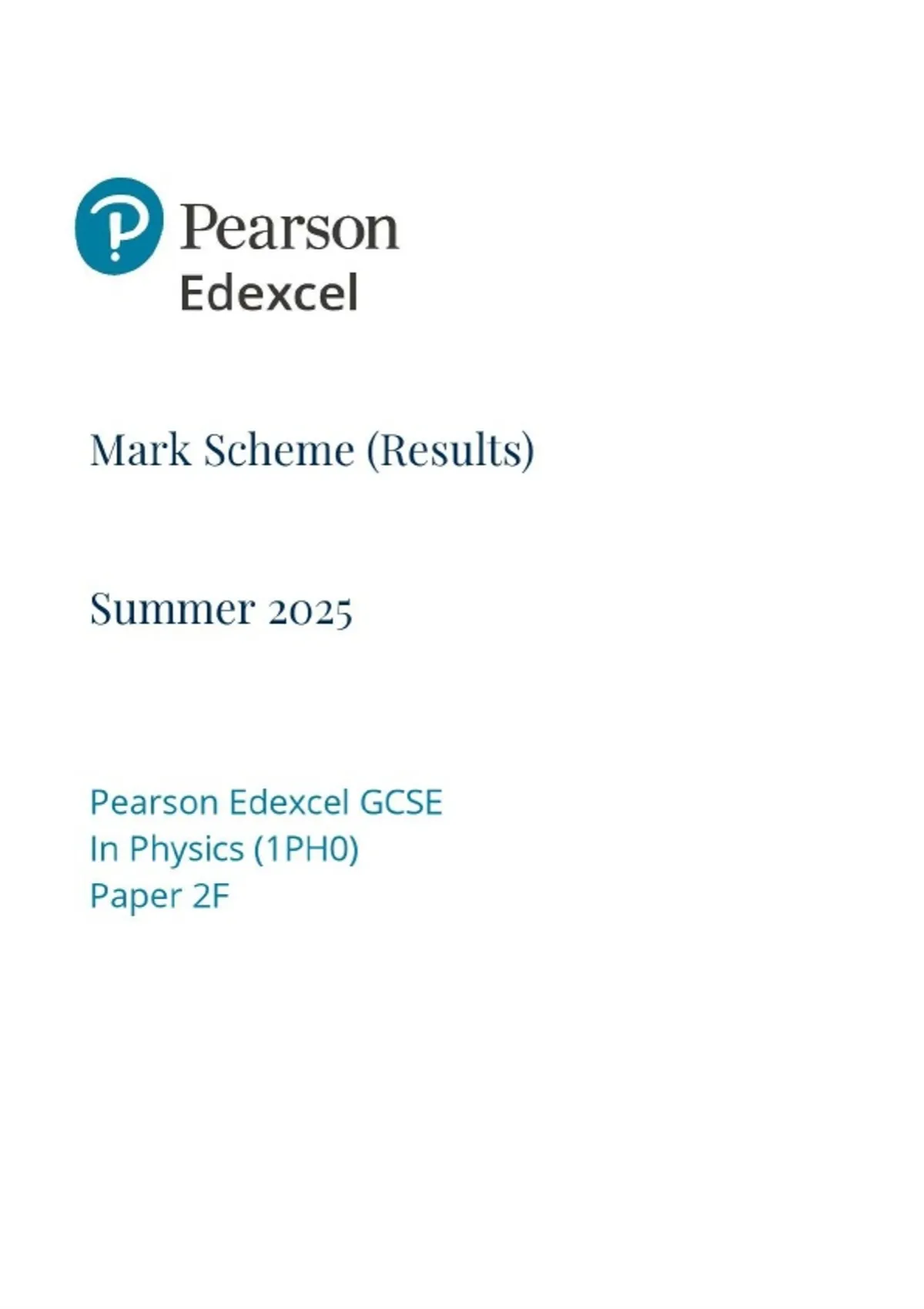 GCSE EDEXCEL 2025 PHYSICS PAPER 2F FOUNDATION TIER MARK SCHEME