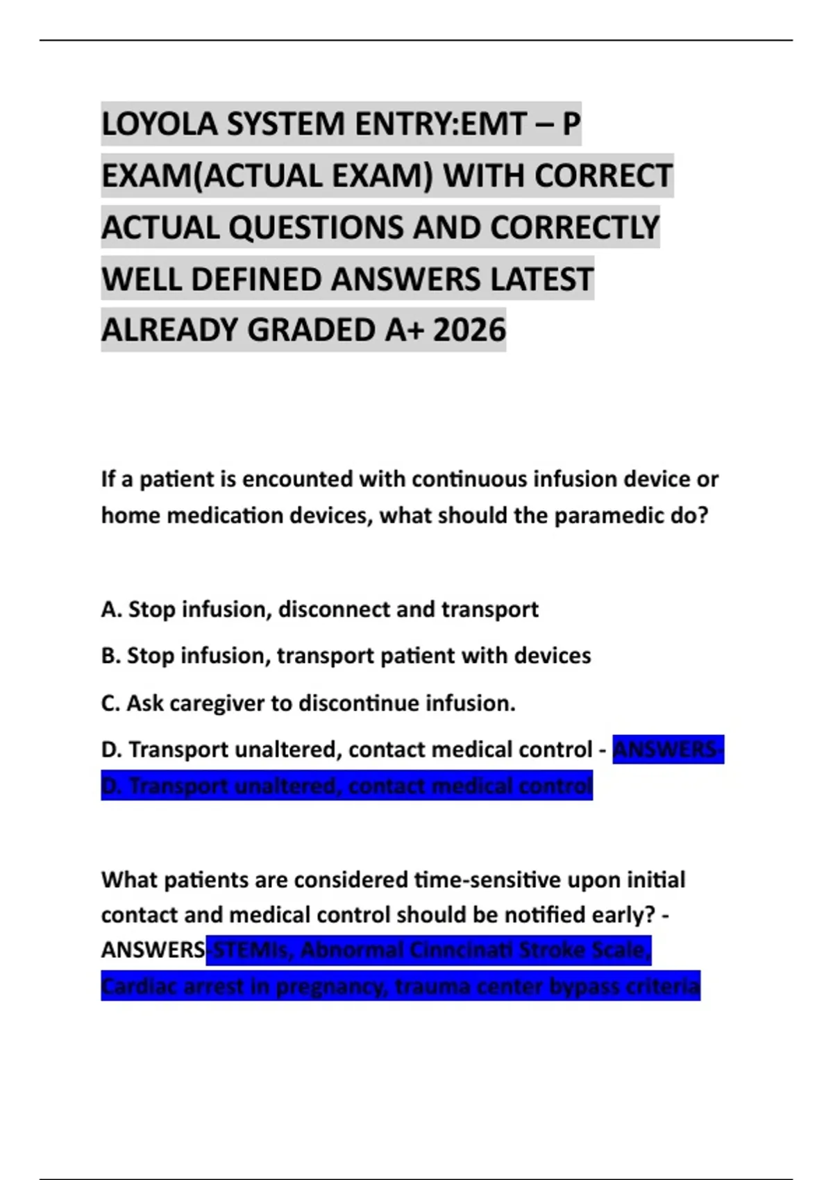 D. Transport unaltered, contact medical control - ANSWERS-